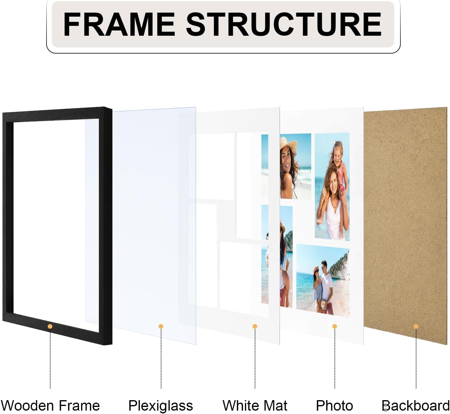 • Premium Materials: Sturdy MDF frame with textured black finish and shatter-resistant plexiglass for lasting durability and crystal-clear photo display
