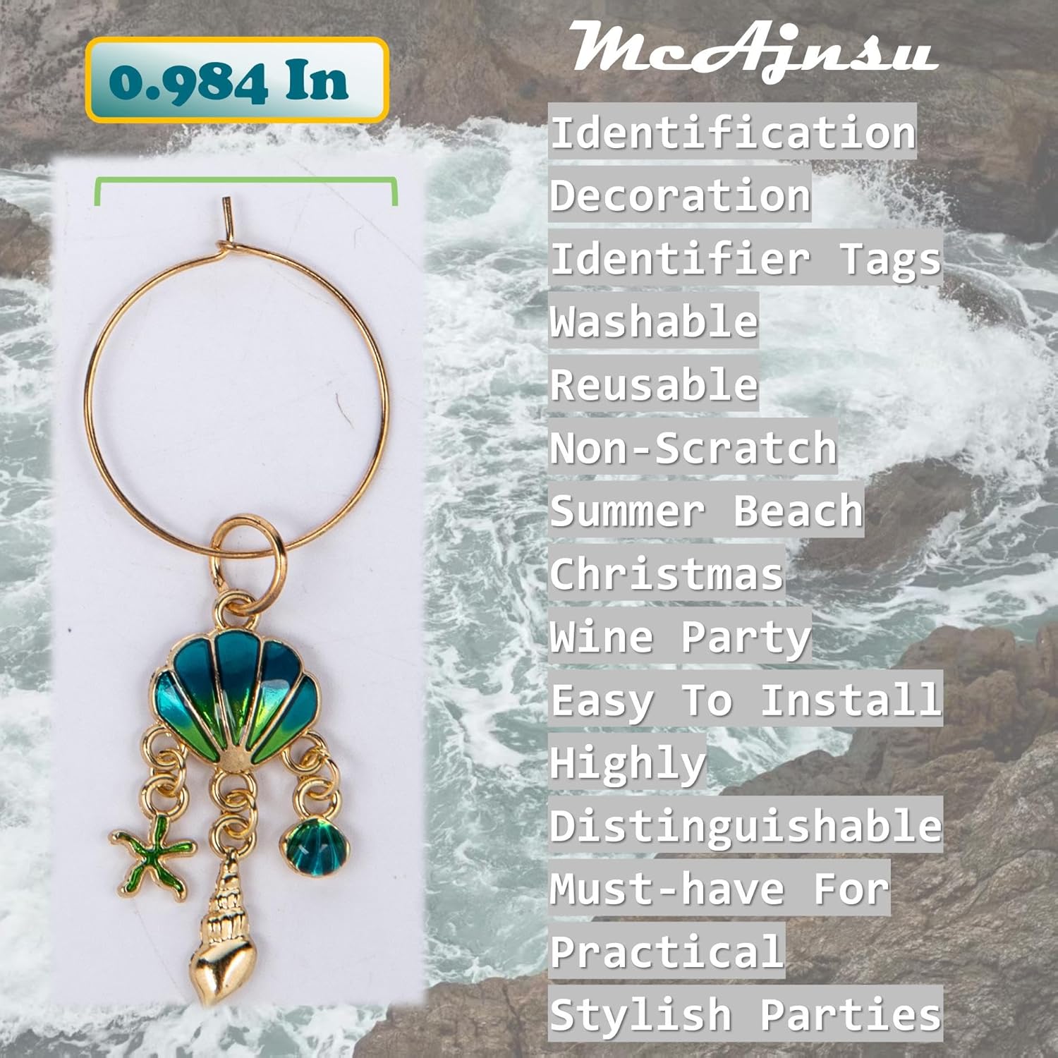 24Pcs Wine Glass Charms & Markers - Reusable Identifier Tags for Stem Glasses - Funny Non-Scratch Charms for Summer Beach, Christmas & Wine Party
