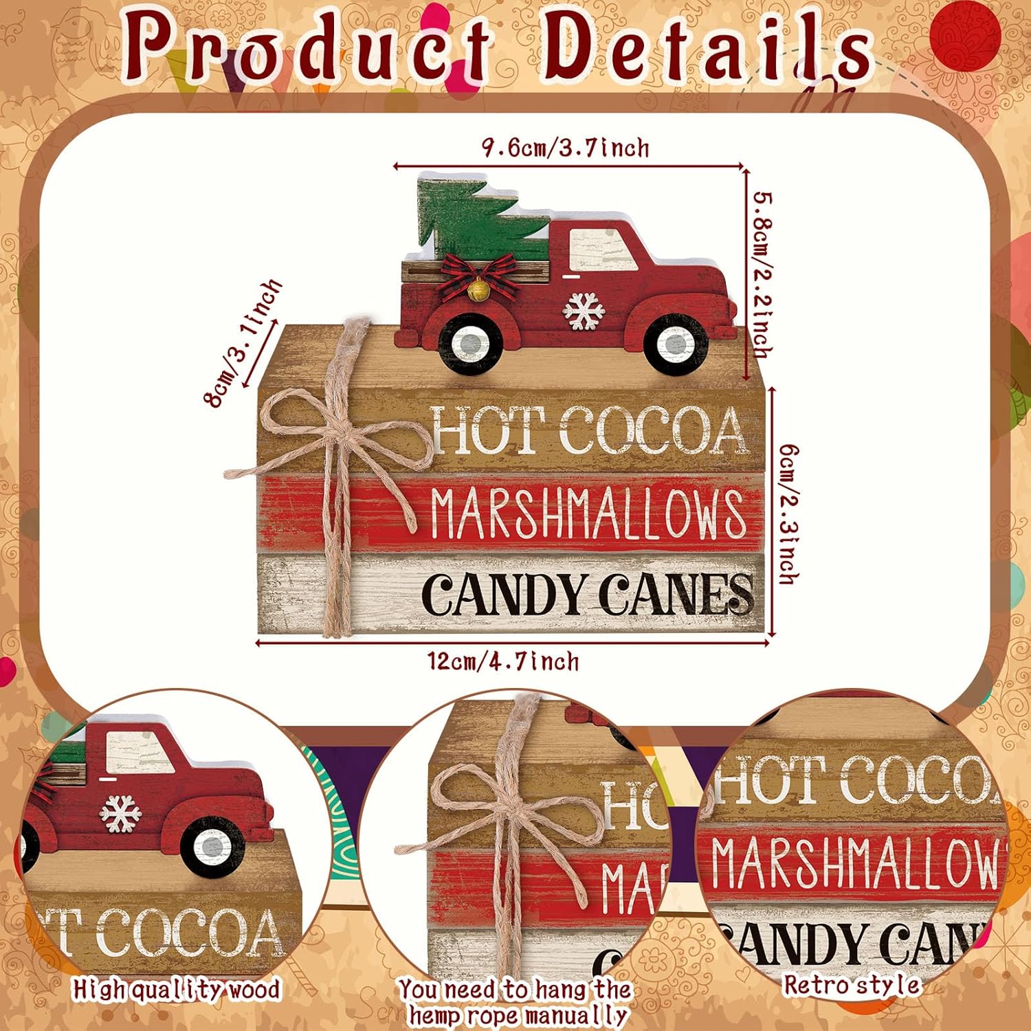 4 Pcs Christmas Table Decorations Red Truck Winter Tiered Tray Decorations Rustic Merry Christmas Table Centerpiece Wooden Books Signs for Office Shelf Classroom Tabletop Bookshelf