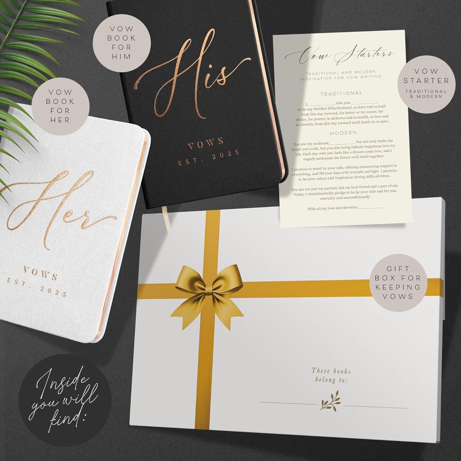 • LUXURIOUS WEDDING ESSENTIALS GOLD ACCENTS: All his her vows books feature gold-foiled “His” and “Her” engravings on the covers, and elegant gold-gilded page edges for a refined and sophisticated finish.