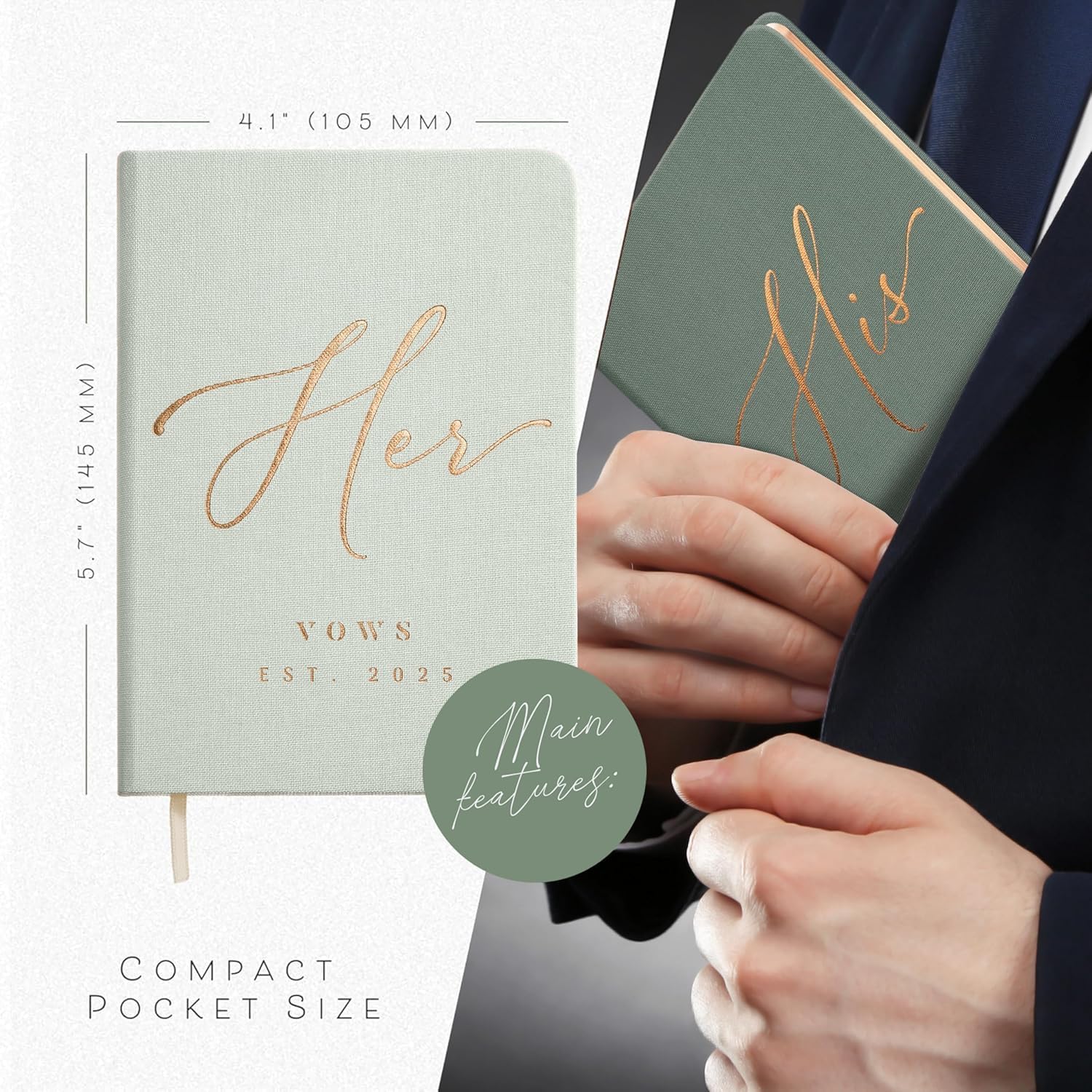 Personalized 2025 Vow Books His & Hers - Mint & Sage Linen Wedding Vow Books Ideal as Wedding Accessories for Brides & Grooms, His & Hers Gifts - Wedding Registry Must Haves 2025 & Elopement Essentials