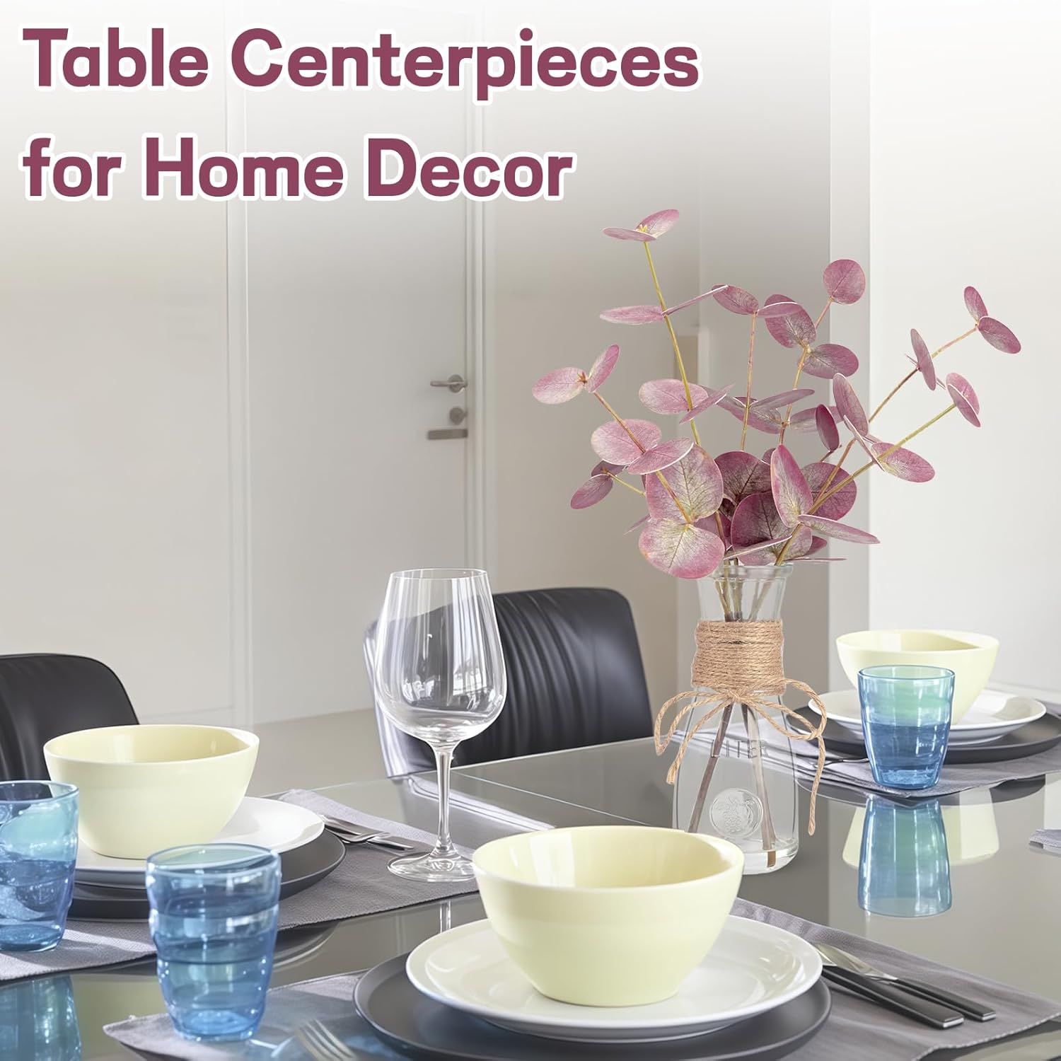 • 【Faux Plant Stems for Vase】: Each eucalyptus leaf is handcrafted and comes with a clear glass vase (Total Height: 15")). The acrylic water ensures that the eucalyptus leaf adheres well to the glass vase, so you don't have to worry about it falling off or spend time arranging them.
