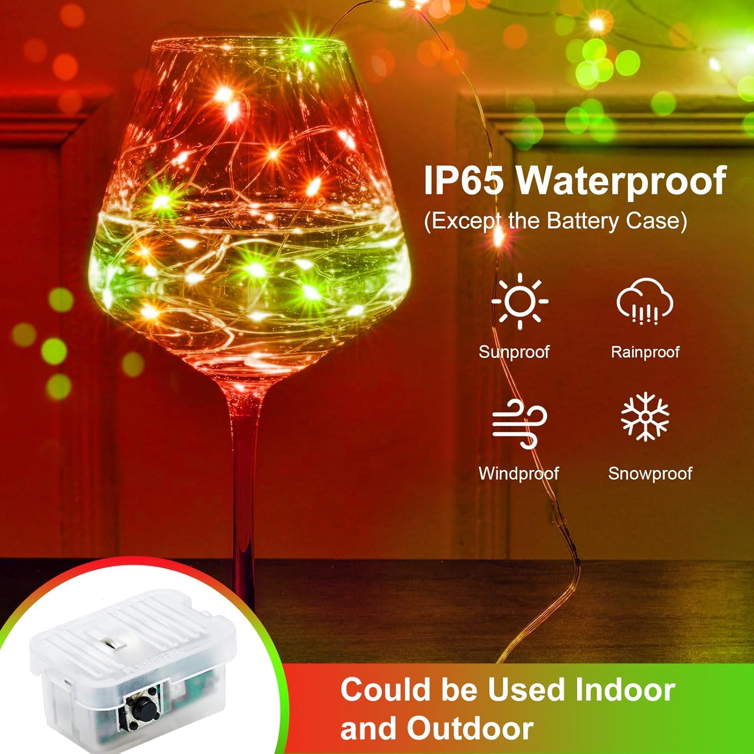 • IP65 WATERPROOF AND INDIVIDUALLY WRAP: The battery fairy lights are waterproof can be used for Indoor/Outdoor. (the battery pack is not waterproof) safe to the touch. Made of soft bendable wire so you can easily bend into any shape or wrapped it on anything such as Christmas trees, wine bottle, pumpkins, guirlande lumineuse interieure, potted landscape etc.Each light is individually packaged, say goodbye to cable tangles and bring more happiness and satisfaction to your family and friends