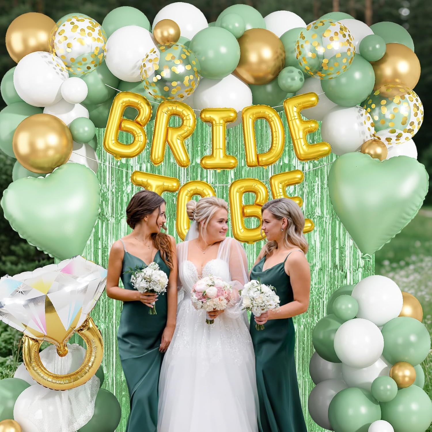 Sage Green Bachelorette Party Decorations, Bride To Be Helium Mylar Foil Letter Balloons with White Gold Camp Latex Balloons and for Bridal Shower Decoration Engagement Hen Wedding Party Decor