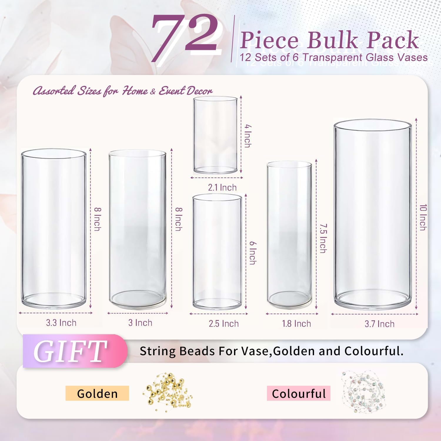 72pcs Glass Vase Cylinder Vases for Centerpieces Small Flower Glass Vases Home Decor Centerpiece Table Clear Flower Vase Decorations for Wedding&Holiday 4,6,7.5,8,8,10 Inch Tall