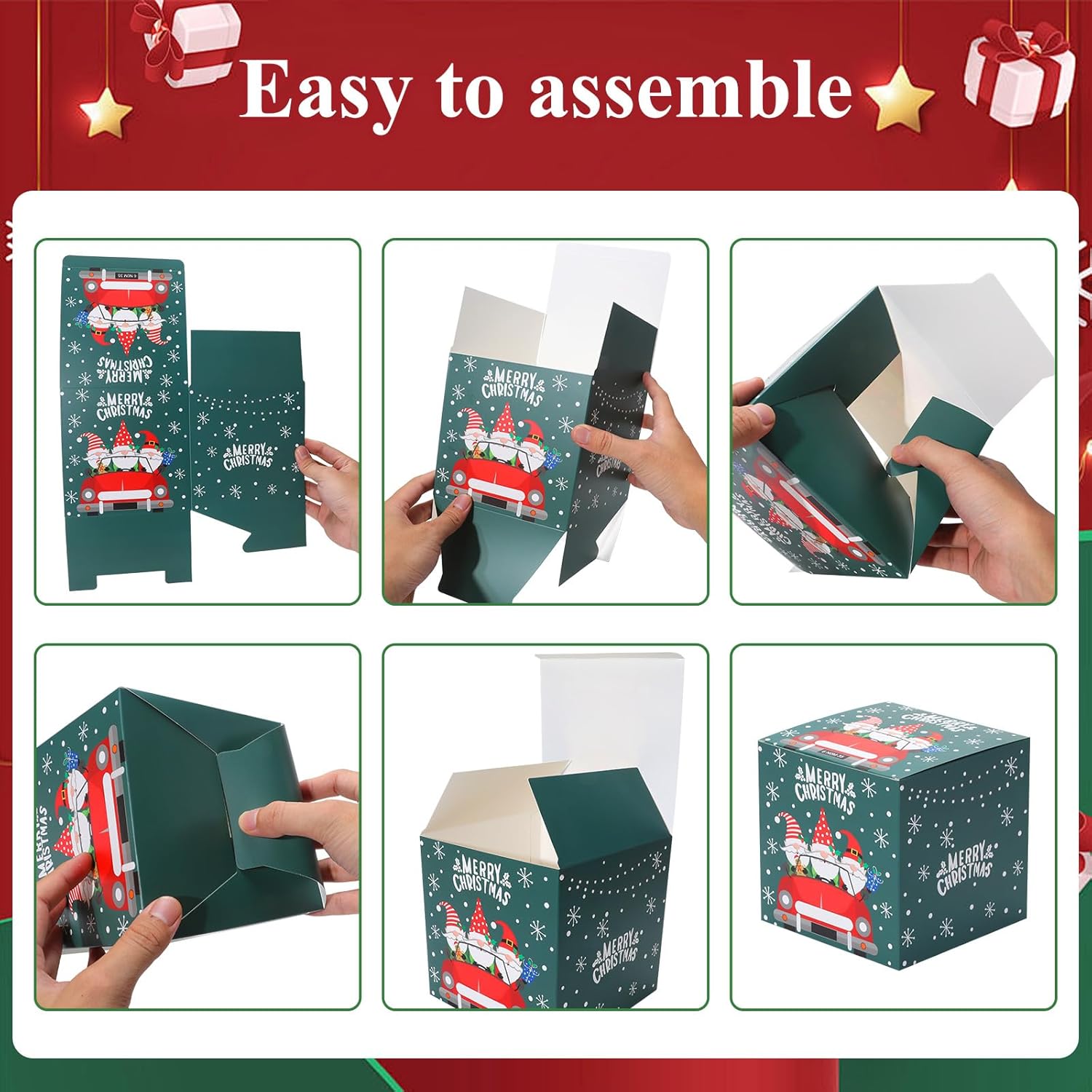 COTOPHER 20 Pcs Christmas Gift Boxes, 5" x 5" x 5" Xmas Candy Boxes for Gift Giving, Paper Treat Ornament Gift Box Decorative Christmas Goodie Box for School Home Holiday Party Favors Supplies