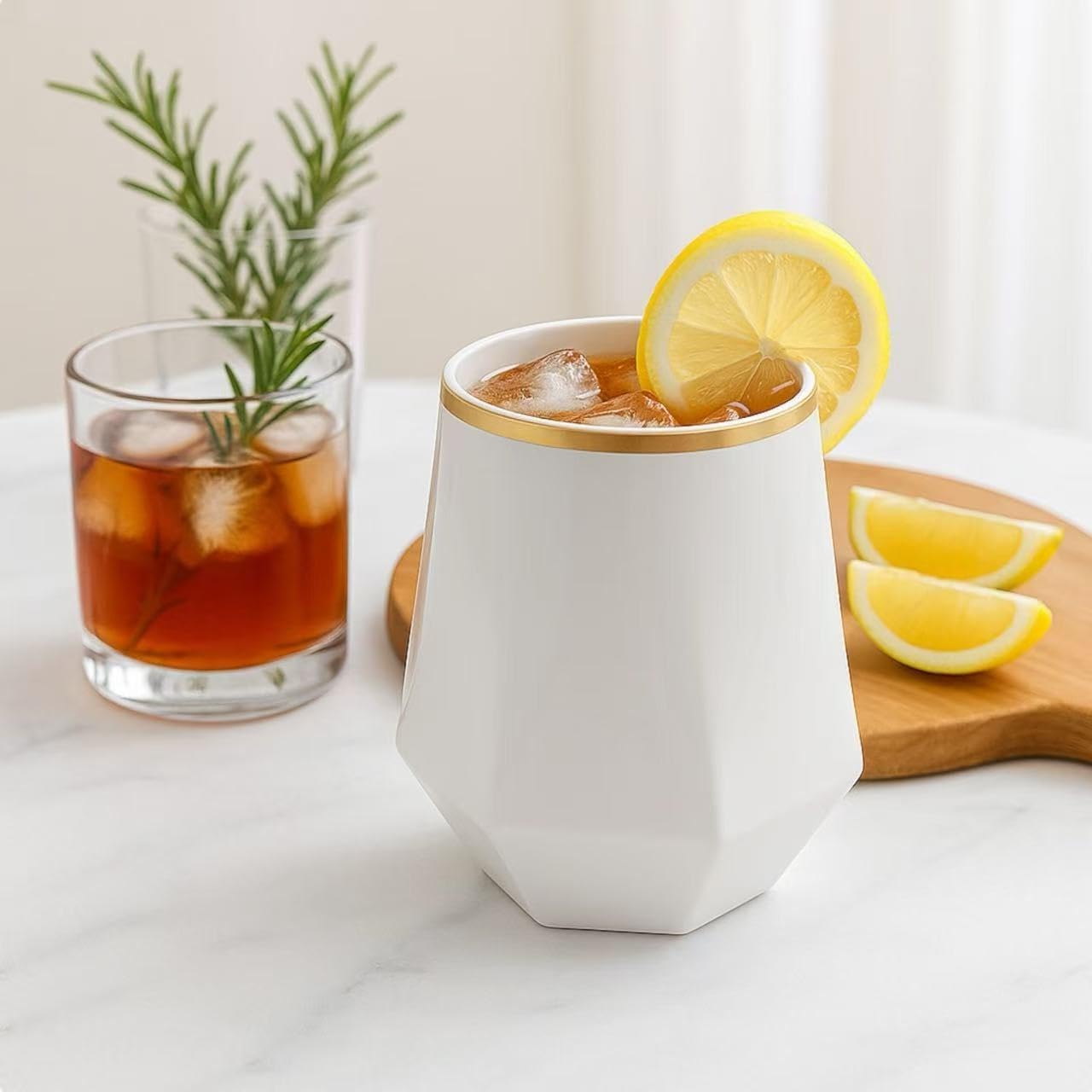 40 count Diamond Unbreakable Stemless Plastic Wine Champagne Whiskey Glasses Elegant Durable Disposable Indoor Outdoor Ideal for Home, Office, Bars, Wedding, 12 Ounce Cups (Diamond White Matte Gold)