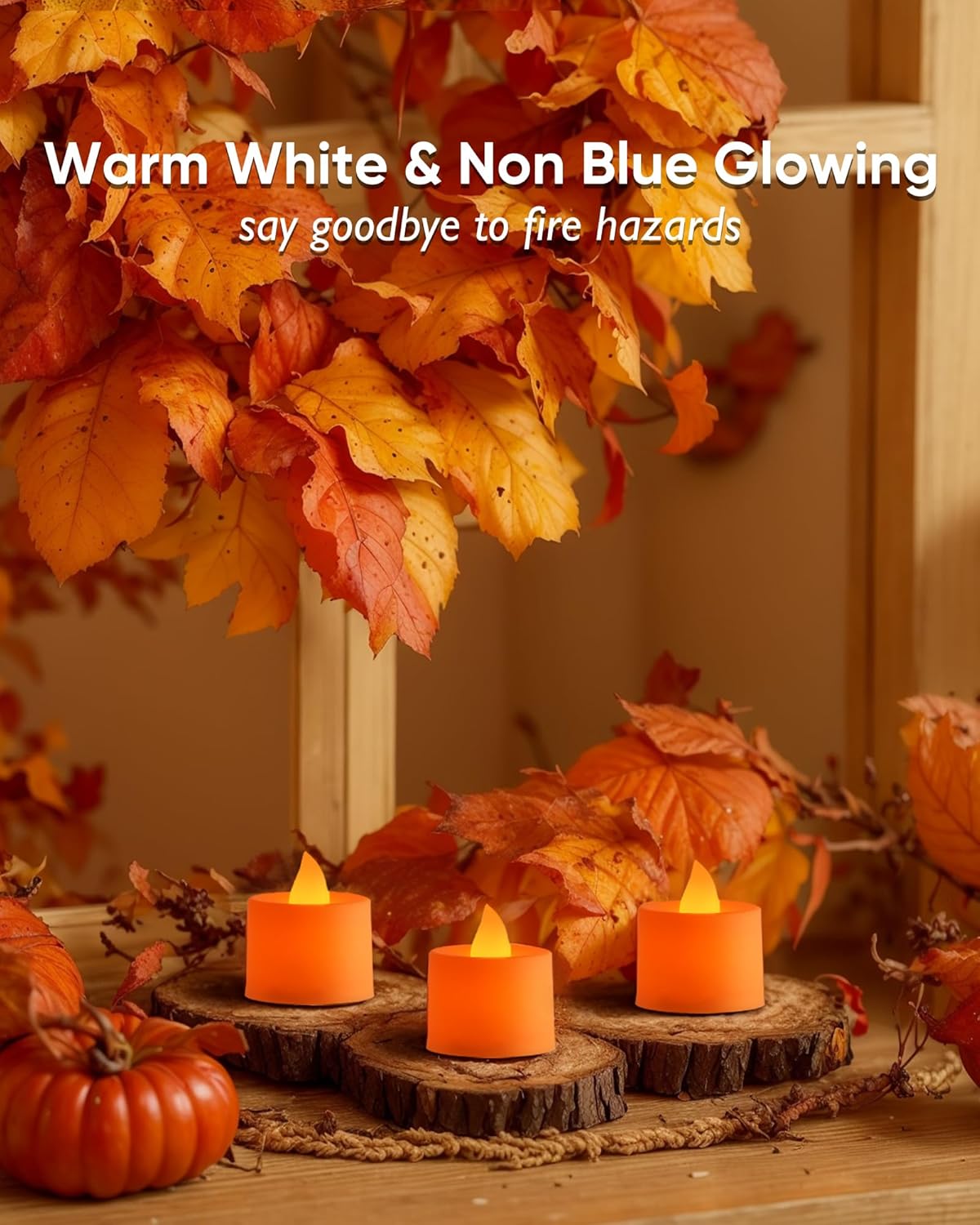 • Orange LED Tea Candles: These enchanting electronic tea lights emit a warm, bright-orange glow, effortlessly transforming any space into a suitable haven. Their realistic wax appearance and touch will leave you amazed