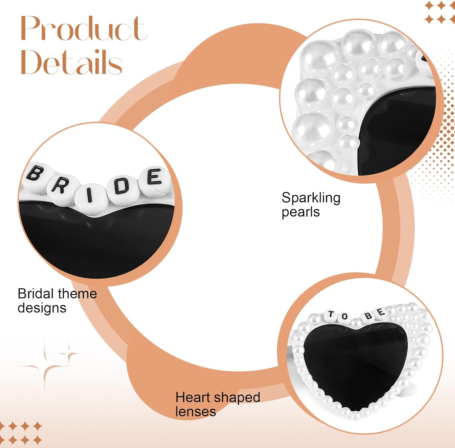 • 2 Piece Bride Set :Includes one white "Bride to Be" satin sash and one pair of pearl heart-shaped sunglasses, perfect for any pre-wedding occasion.