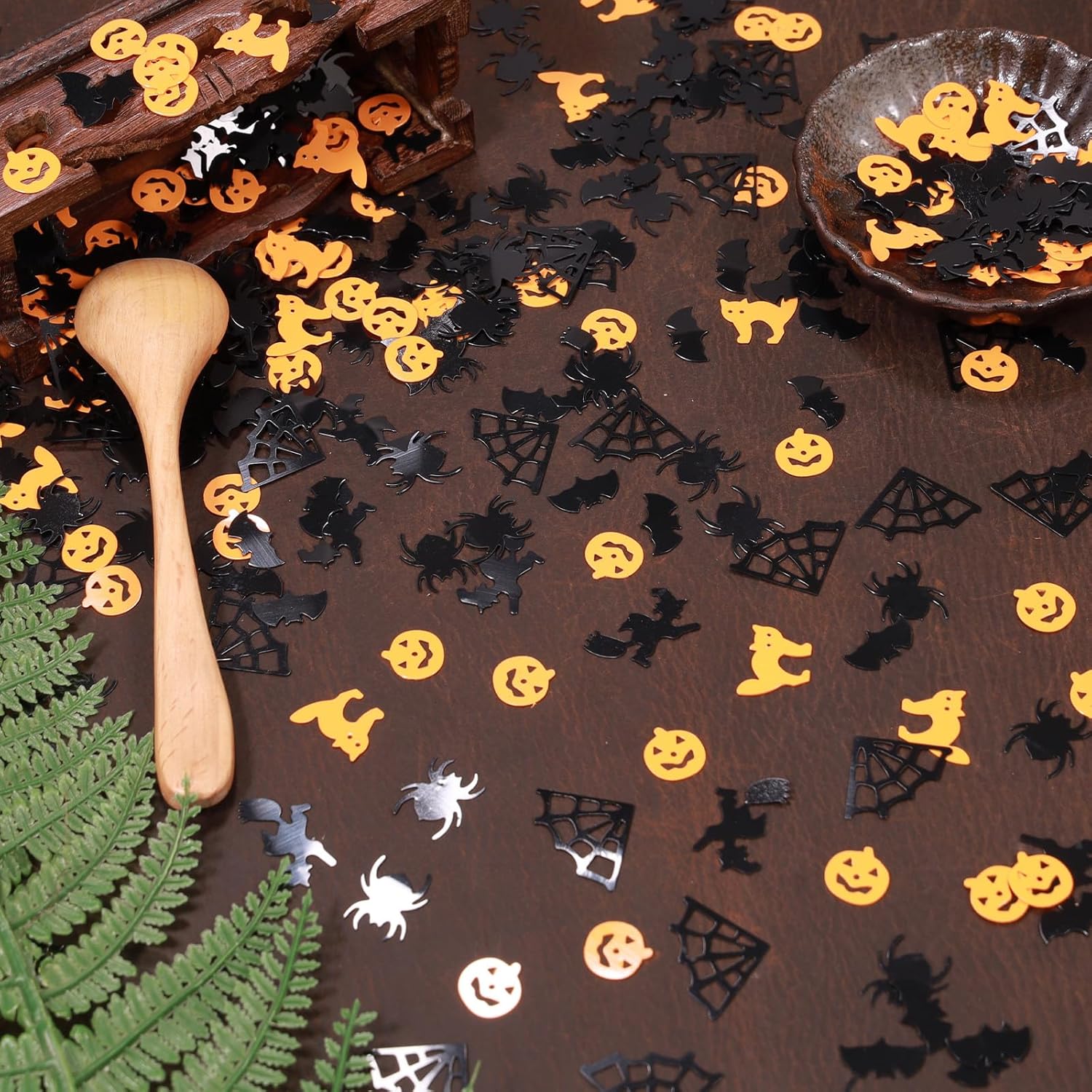 Orange and Black Halloween Party Table Scatter Confetti, 3000 Pcs Pumpkin Spider Webs Bat Foil Metallic Confetti for Halloween Party Table Decorations