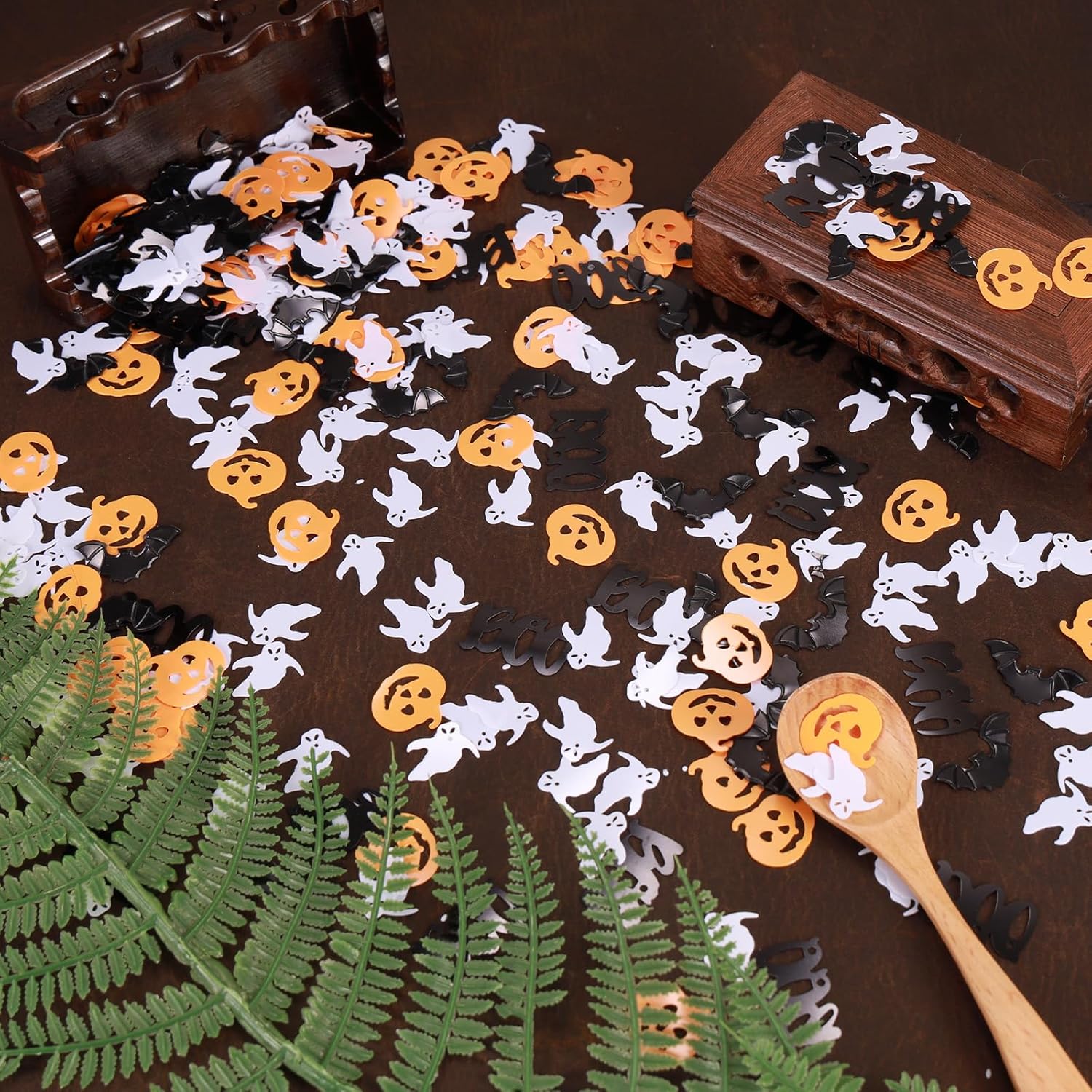 Halloween Party Table Scatter Confetti, 3000 Pcs Black and White BOO Foil Metallic Confetti for Halloween Party Table Decorations
