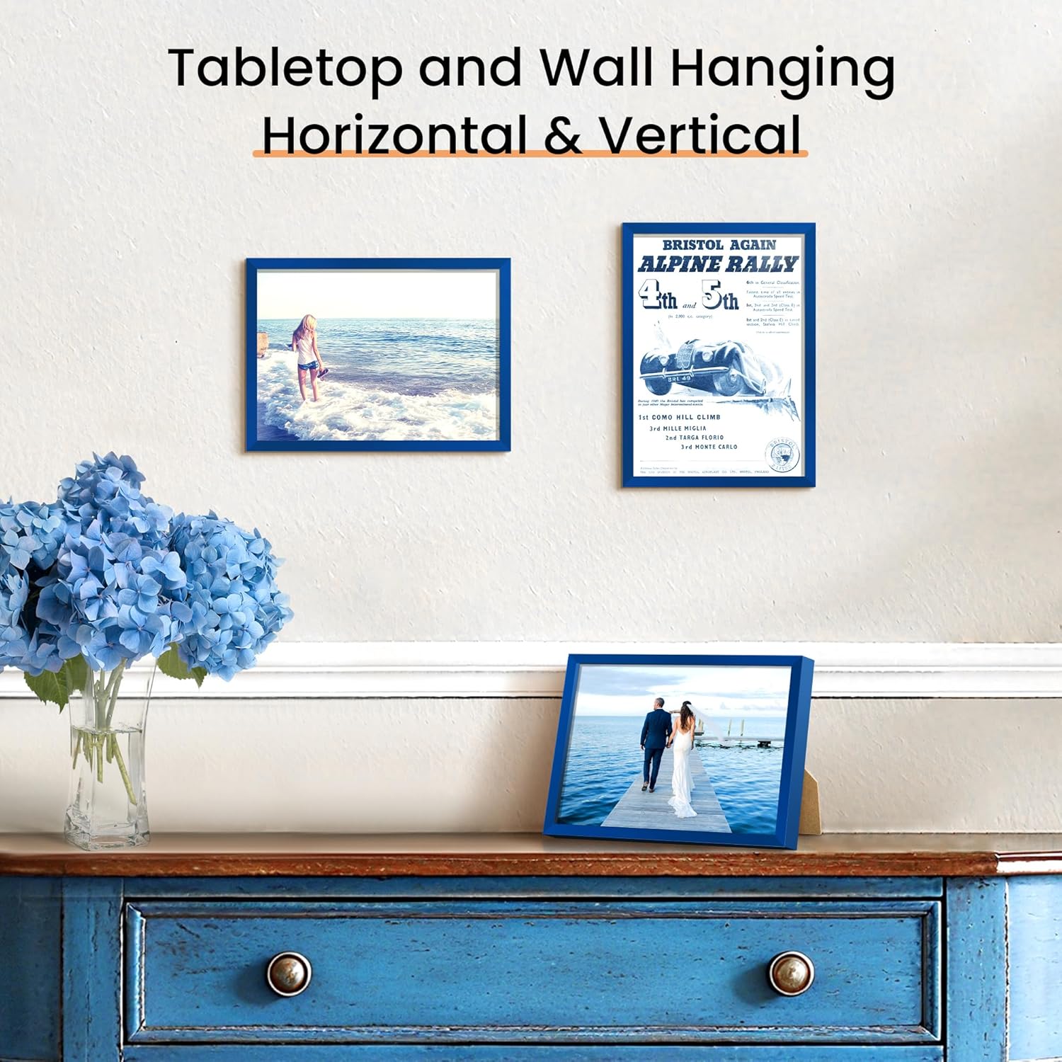 • Size: One wall blue photo frame fits 5x7 photo without mat, can be hung horizontally or vertically.