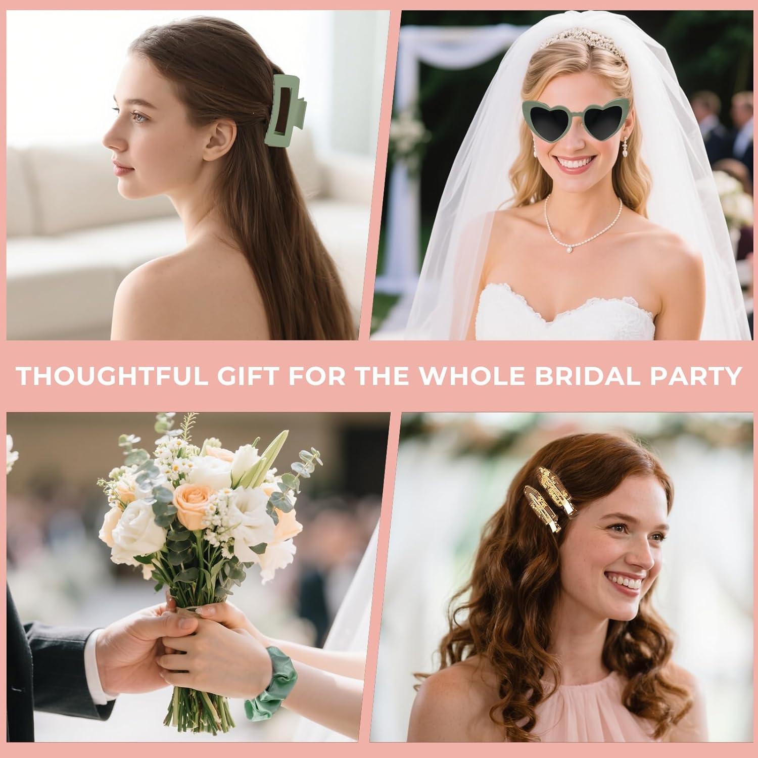 Sage Green Bridesmaid Gifts for Proposal, 12PCS Girls Gift Set with Hair Claws, Scrunchies, Makeup Clips & Heart Sunglasses, Wedding Bachelorette Party Favors, Birthday Gifts for Women Teens