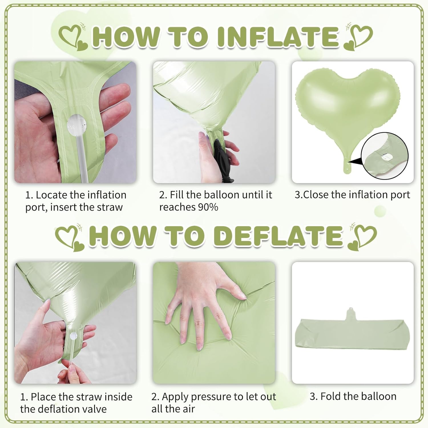 • 24 Inches Heart Balloons - Package contains 6 pcs green and cream heart balloons, 1pc straw and 1pc ribbon.The heart shaped balloons are ideal for any party. 24 inch is big and special enough to decorate your party.