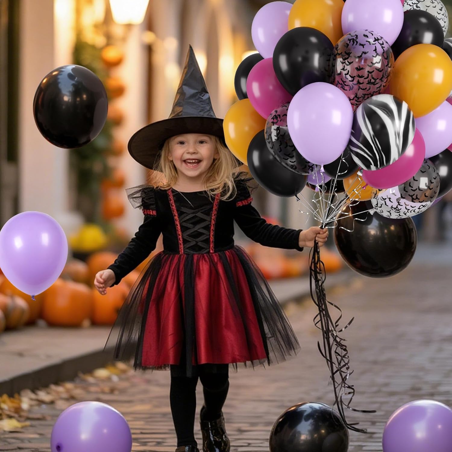• Unique Color & Texture Combination: This black and purple balloon blend pairs macaron purple with bold black and dusty retro yellow, adding a tie-dye marble effect for a striking look. The shimmering bat confetti balloons enhance the spooky mood, while the mix of tones and patterns brings depth and visual interest to your dΓ©cor. Ideal for Halloween themes, vampire nights, or ghostly masquerades