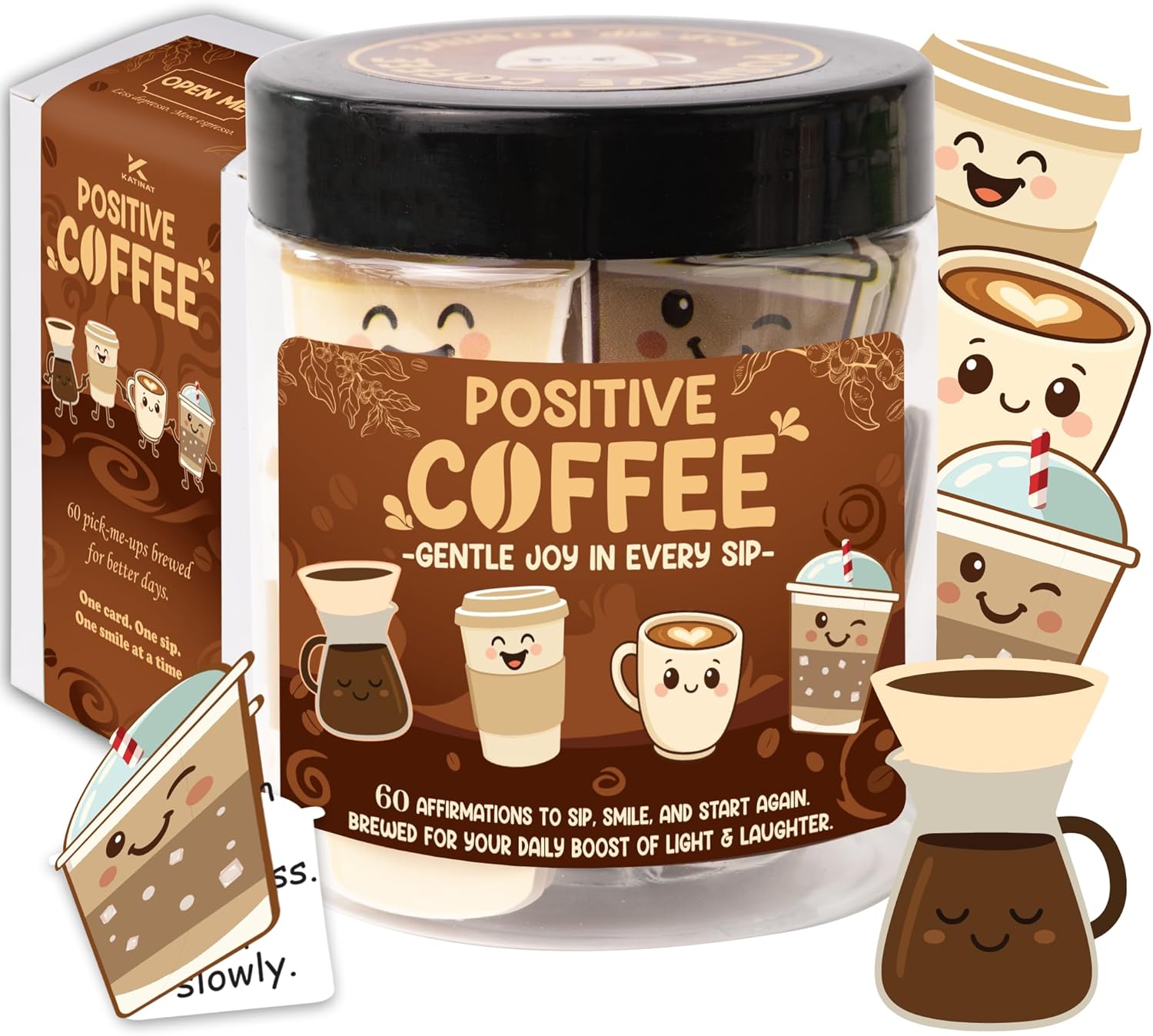 • β˜• Emotional Support Coffee in a Jar: 60 coffee-themed affirmation cards in latte cup shapes. A thoughtful, caffeine-free way to spread joy and encouragement every day.