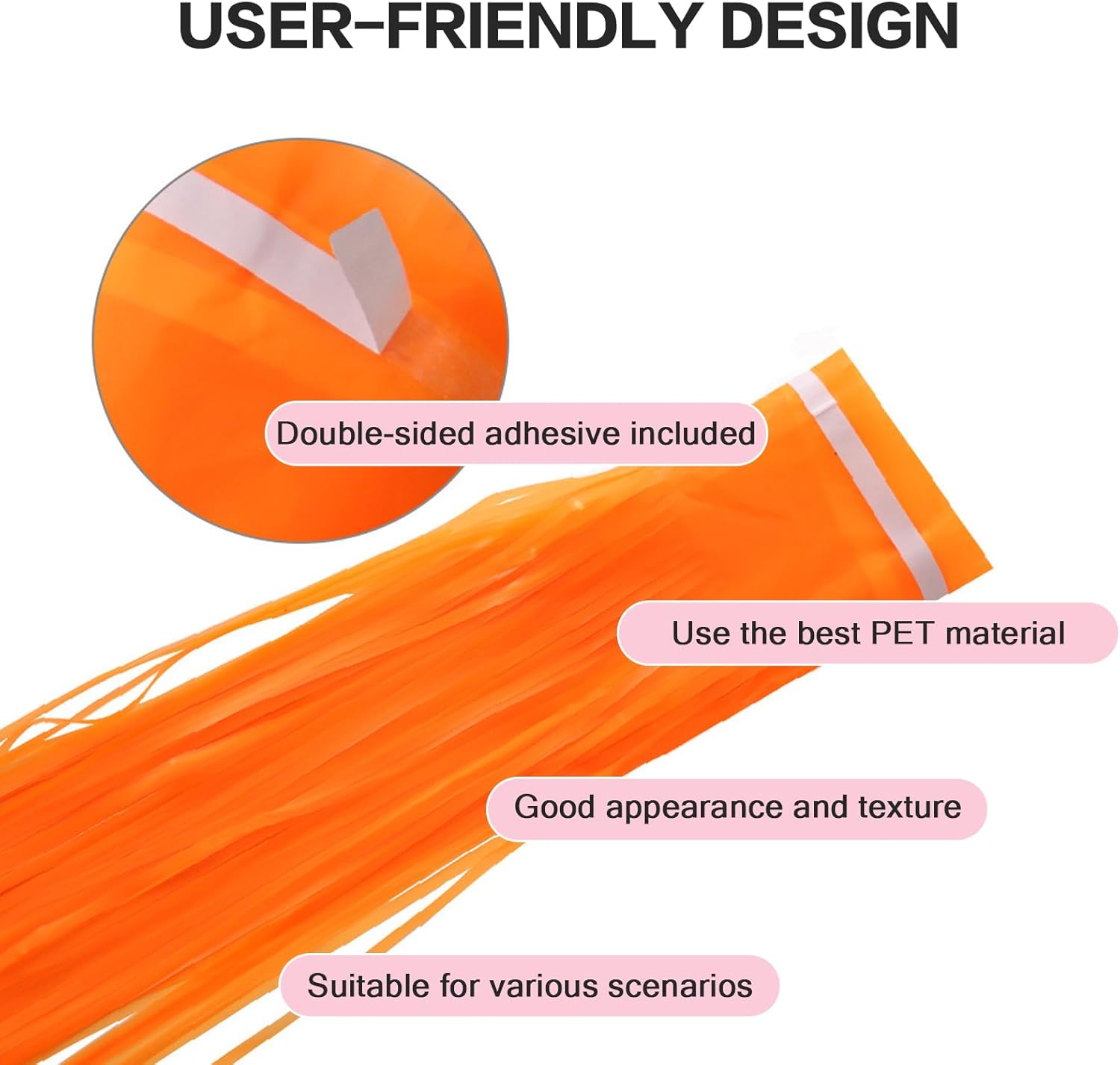 • ๐ŸŽ‰PACKAGE INCLUDED : 2 pack of Orange foil fringe curtains, the size of each tinsel curtain is 3.3 ft x 8.2 ft, enough length for hanging on a door or covering a wall fully, suitable for any parties.