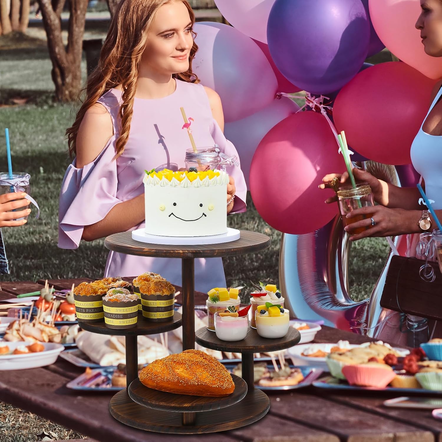 • 【Versatile Use】Wooden cup cake tower stand suitable for wedding cake tower, bridal shower candy bar, breakfast pastry station, Anniversary floral centerpiece. The dessert stands can display many kinds of food, such as cupcakes, cake, cookies, fruits, bread, candies, pies.