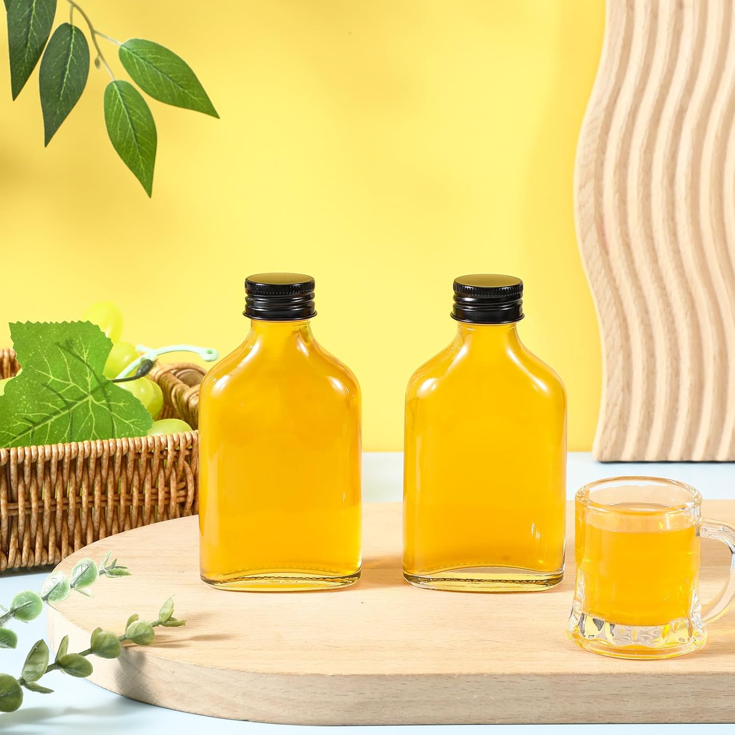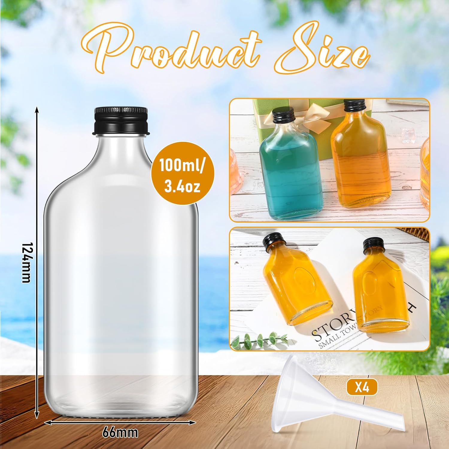 • Multi Purposes: our small glass flask bottles have a small capacity, not only suitable for liquor, hot sauce, beer, whiskey, wine, champagne, maple syrup, and vanilla, also suitable for you to dispense juice, essential oil, etc., can be helpful in kitchen, bar, travel, camping, restaurant, BBQ and more