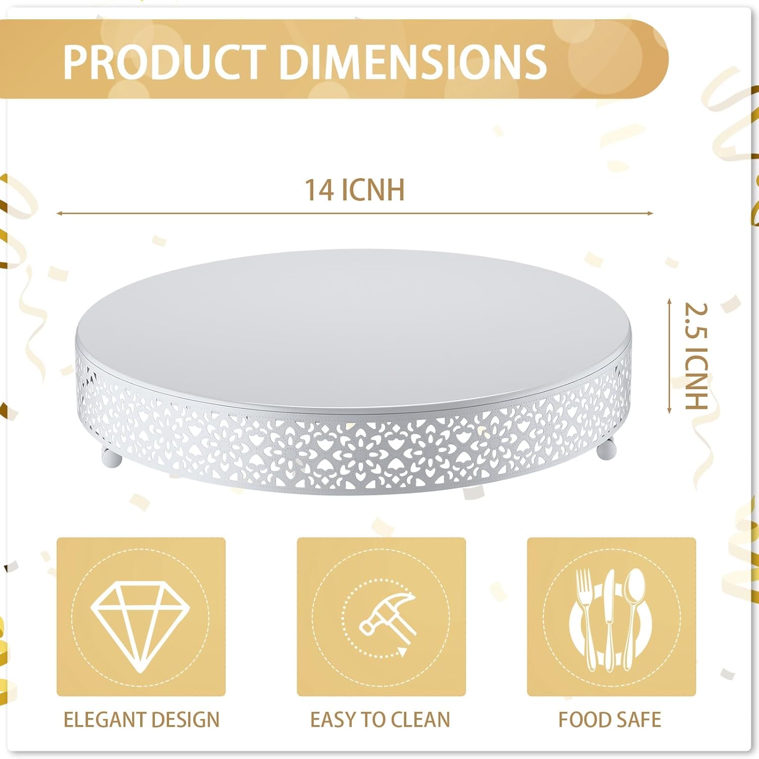 Wenqik Cake Stand 14 Inch Round Metal Cupcake Dessert Wedding Cake Stand Cookies Display Holder Fruit Serving Tray for Table Wedding Birthday Anniversary Party(White)