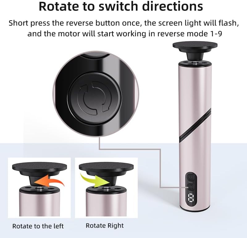 • Rechargeable Cordless Design: Unlike traditional corded electric callus remover for feet, this one is completely wireless design. Convenient and flexible to use in different scenarios. Equipped with a high-capacity 1800mAh battery that supports up to 3 hours use. It also has a one-touch reversing function that makes it easy to switch the direction of grinding.