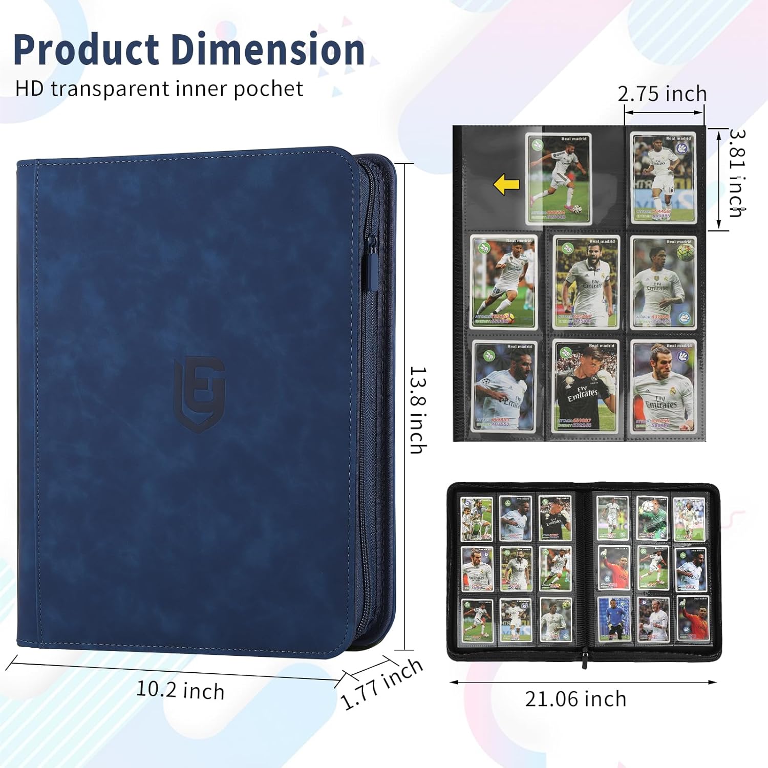 • DETAILED DESIGN:The card binder is made of premium PU leather, water or raindrops will not penetrate, different colors of the trading card binder with different colors of the zip, to meet your personalised needs. Side card pocket prevents cards from spilling out and protects your cards from fading and staining