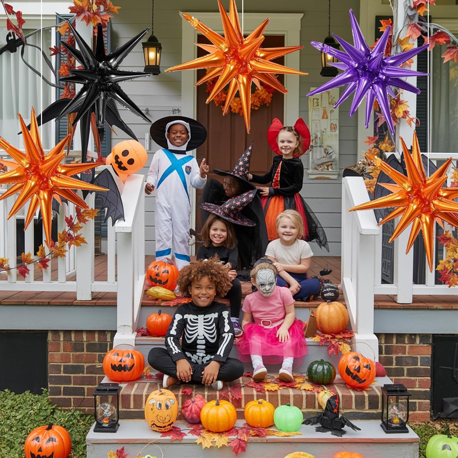 • Black Purple Orange Star Balloons Set:Package include 9pcs 22Inch explosion star balloons(black x 3,purple x 3,orange x 3).Large enough to help you better decorate your party.