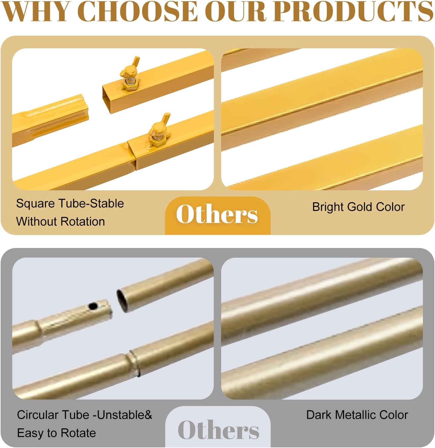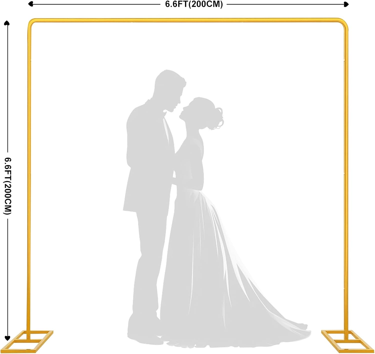 • Sturdy Metal Arches: This metal square background frame measures 6.6 feet x 6.6 feet in arch shape and is made of ultra thick rust resistant metal with exquisite gold accents, creating an elegant balloon background frame