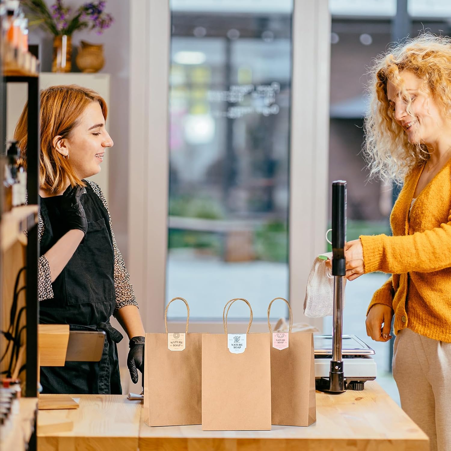 • Sustainable FSC-Certified Packaging: Kraft bags with handles bulk made from FSC-compliant recycled paper. Brown paper bags with handles are biodegradable, recyclable and compostable. Reduces waste while meeting retail packaging standards for eco-minded buyers