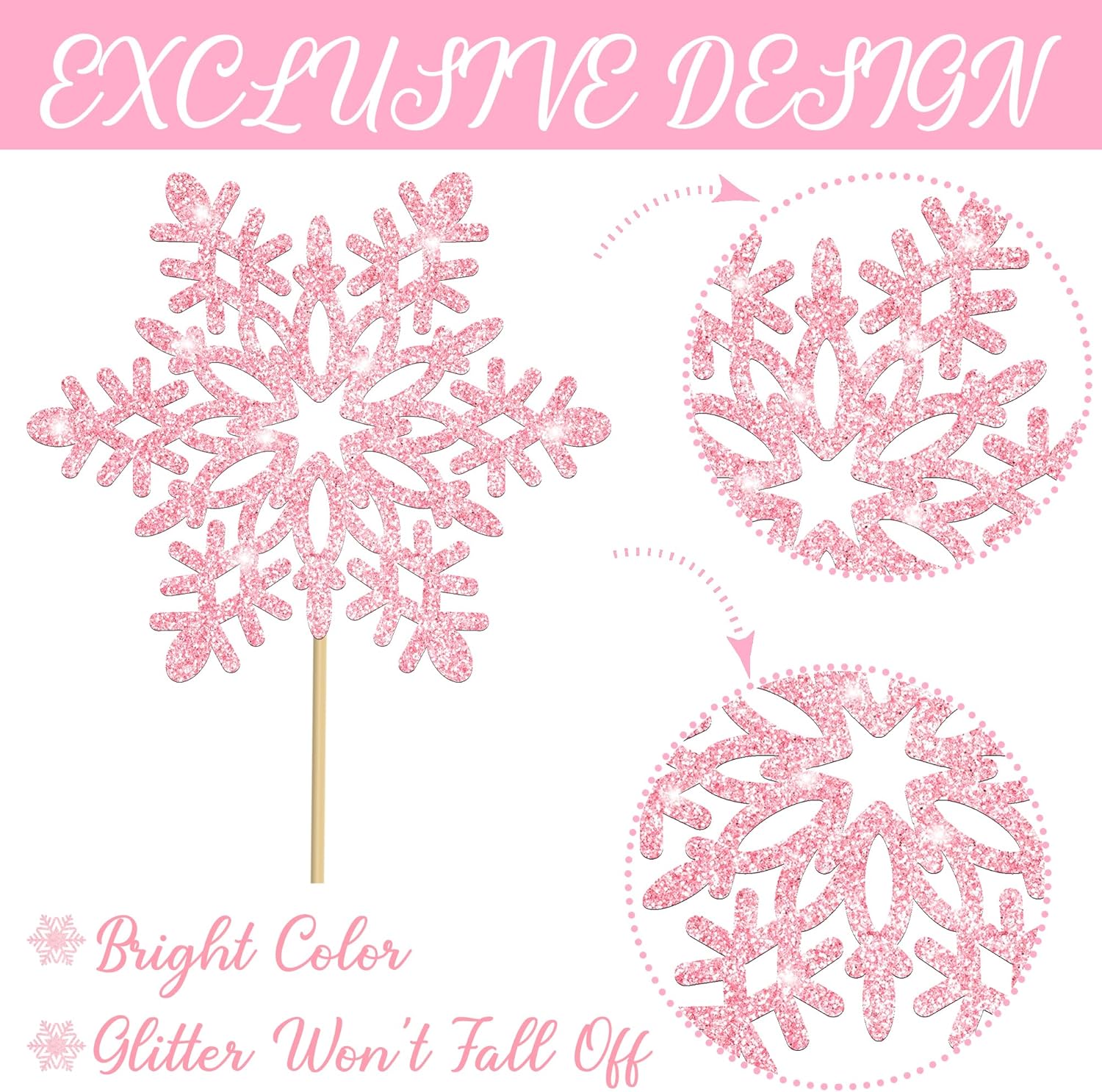 • Pack of 12pcs: You will get 12pcs glittering snowflake centerpiece sticks, including 6 silver and 6 pink snowflakes for elegant winter-themed decorations