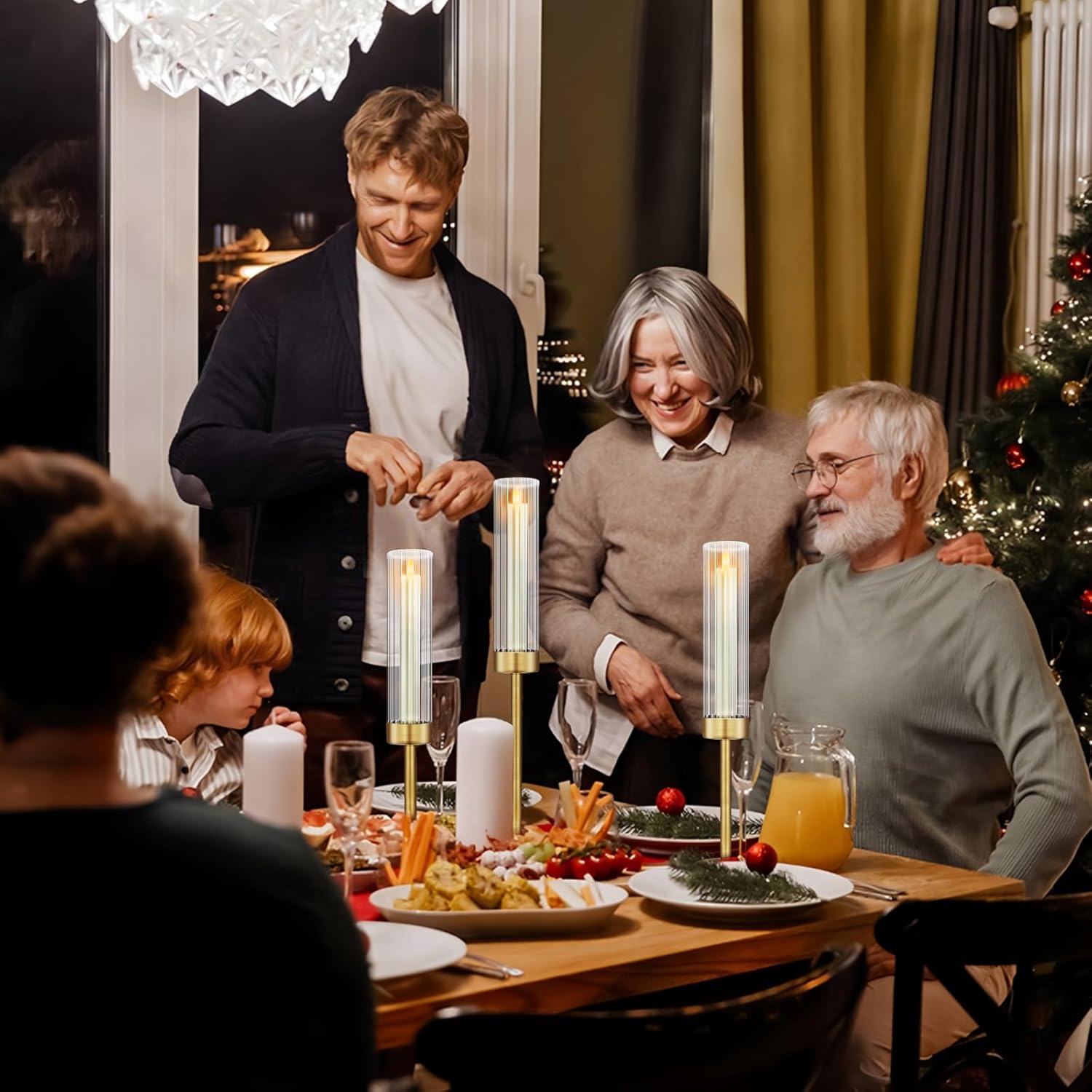 • WIDE APPLICATIONS - This taper candle/candlestick holders set is suitable for candle sticks and taper candles. They can be placed in living room, bedroom, bar, at your dinner table or coffee table etc. To create a romantic atmosphere for wedding, home decor, ceremony and anniversary.Three different heights of candlelight visual effects create a romantic and noble atmosphere, also can be a great decoration for Christmas, Thanksgiving, New Year, Valentine's day, Halloween, or other special events - A perfect gift for all of us!!!