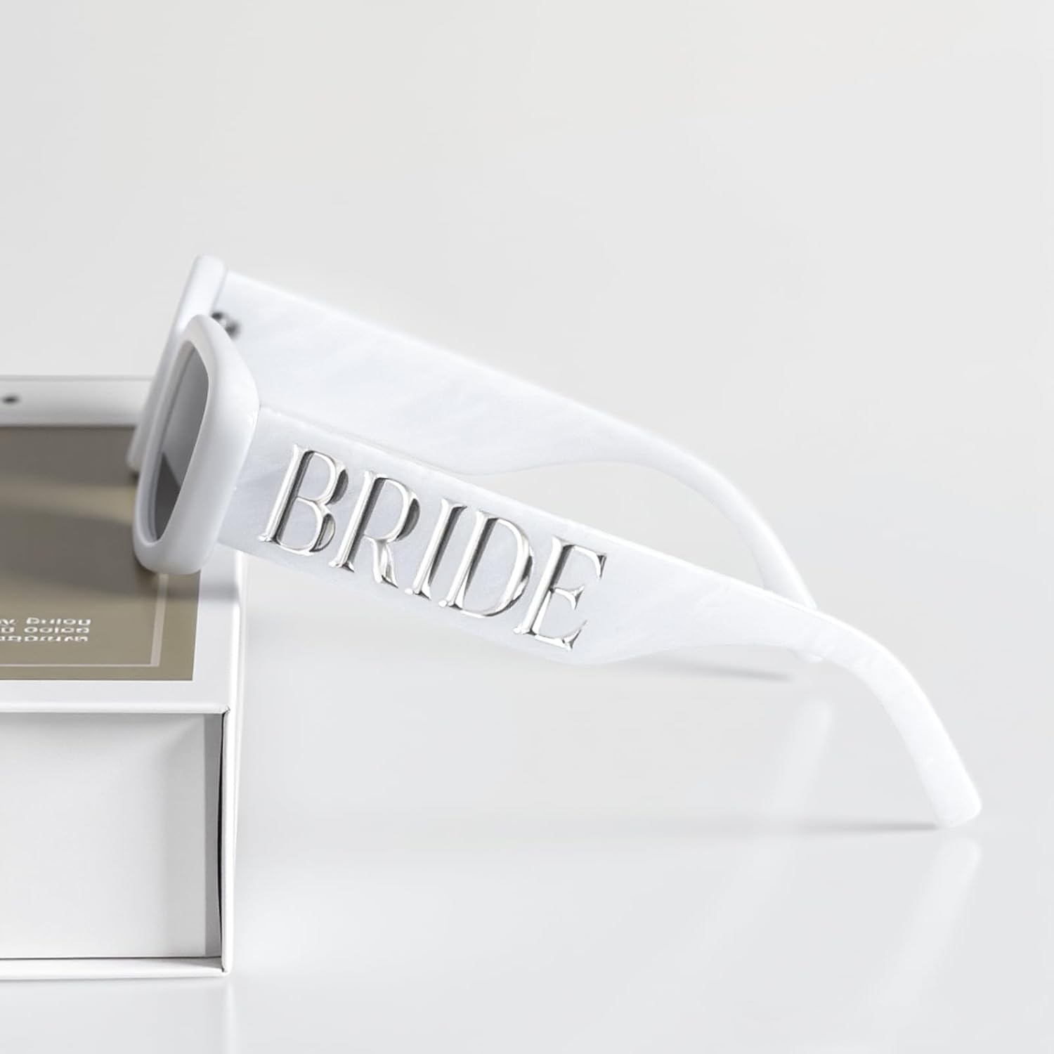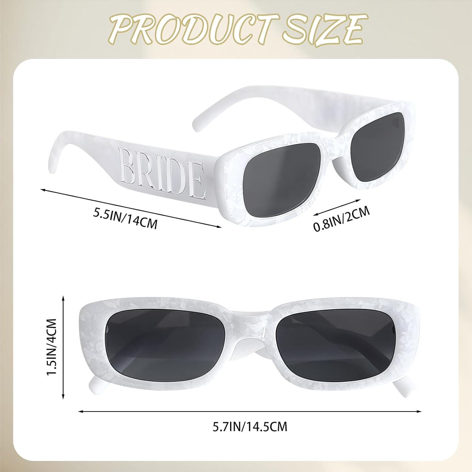• Perfect for the Bride to Be! โ€“ These chic white marble sunglasses feature "Bride" engraved on the arms, making them a must-have accessory for Bachelorette Parties, Bridal Showers, and wedding celebrations