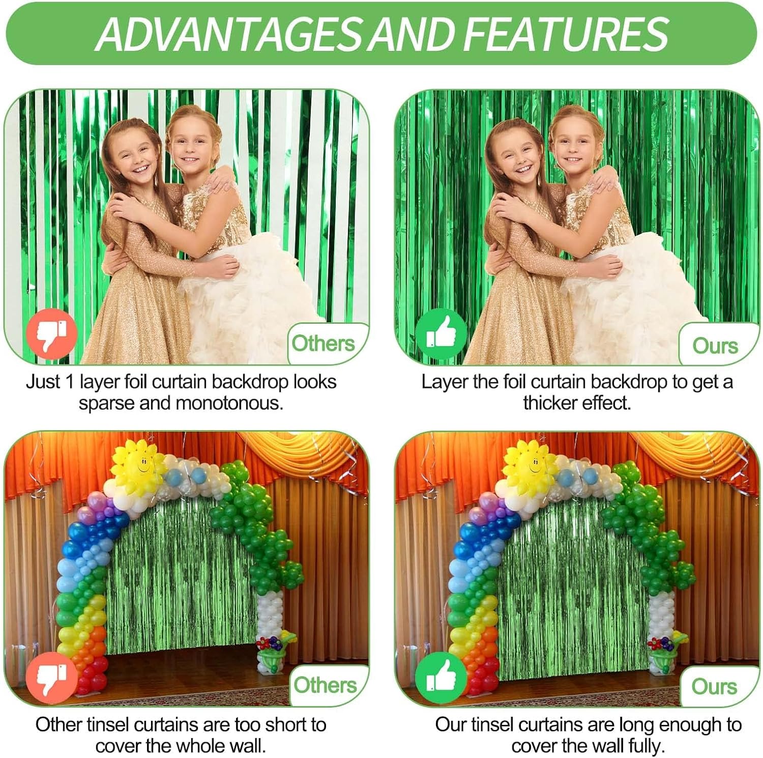6 Pack Green Foil Fringe Curtains Streamers Party Decorations 3.3 x 8.2 ft, Tinsel Curtain Fringe Backdrop for Parties, Door Fringe Birthday Streamers, Photo Booth Backdrops, Party Decor