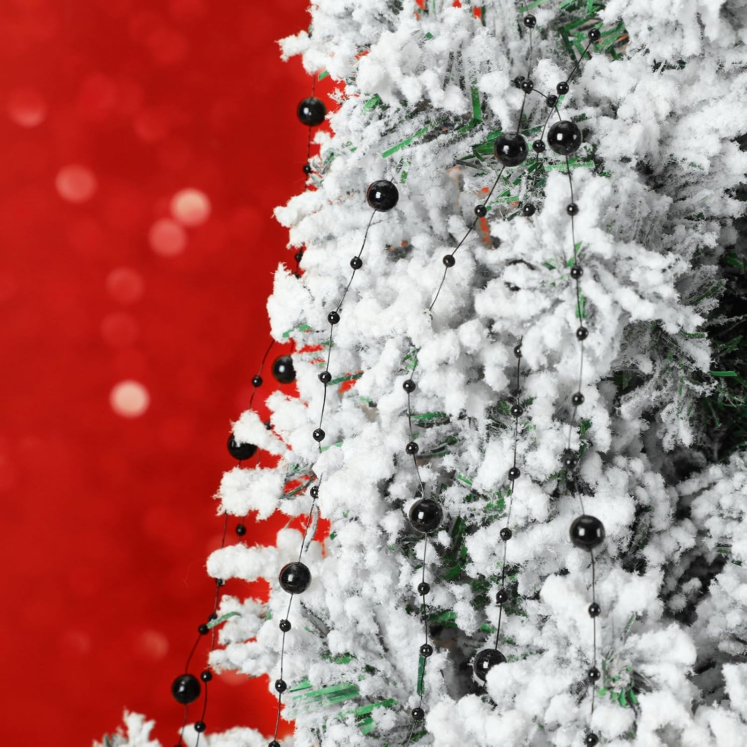 JULBEAR 131Ft Artificial Pearl Beads Garland Decoration, 1Rolls Black Pearl Strands Chain Bead Garland for Gothic Wedding Decor Bouquet Crafts Flower DIY Supplies Christmas Tree Ornaments
