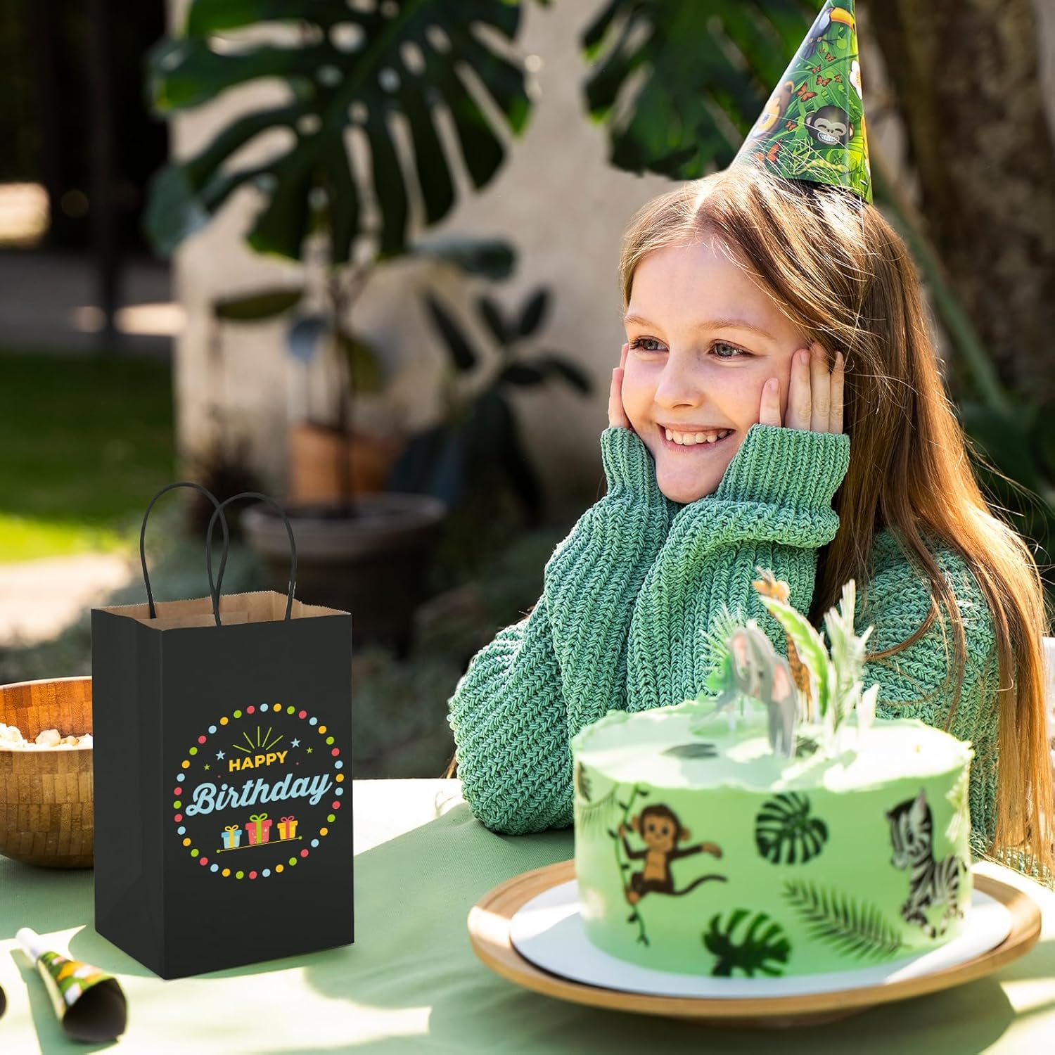MESHA Kraft Gift Bags 200 Pack 5.25x3.75x8 Inch Small Black Paper Bags with Handles Bulk for Small Business,Birthday,Party,Wedding,Retial,Shopping Bag