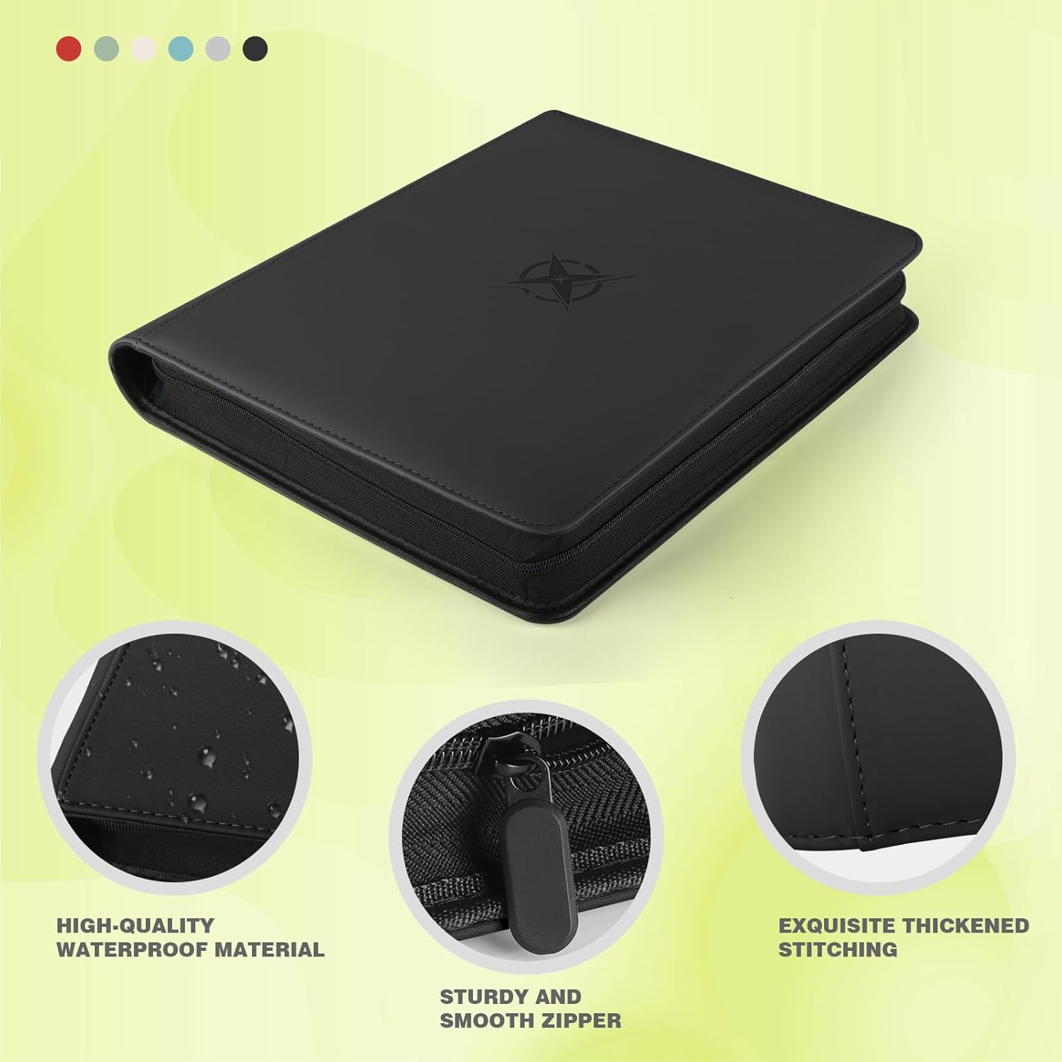 • Premium Zipper Closure for Extra Safety:Premium zipper closure provides added security This card collection binder comes with a premium, smooth zipper that protects against dust, moisture and accidental spills, ensuring that your cards and baseball binder remain intact.