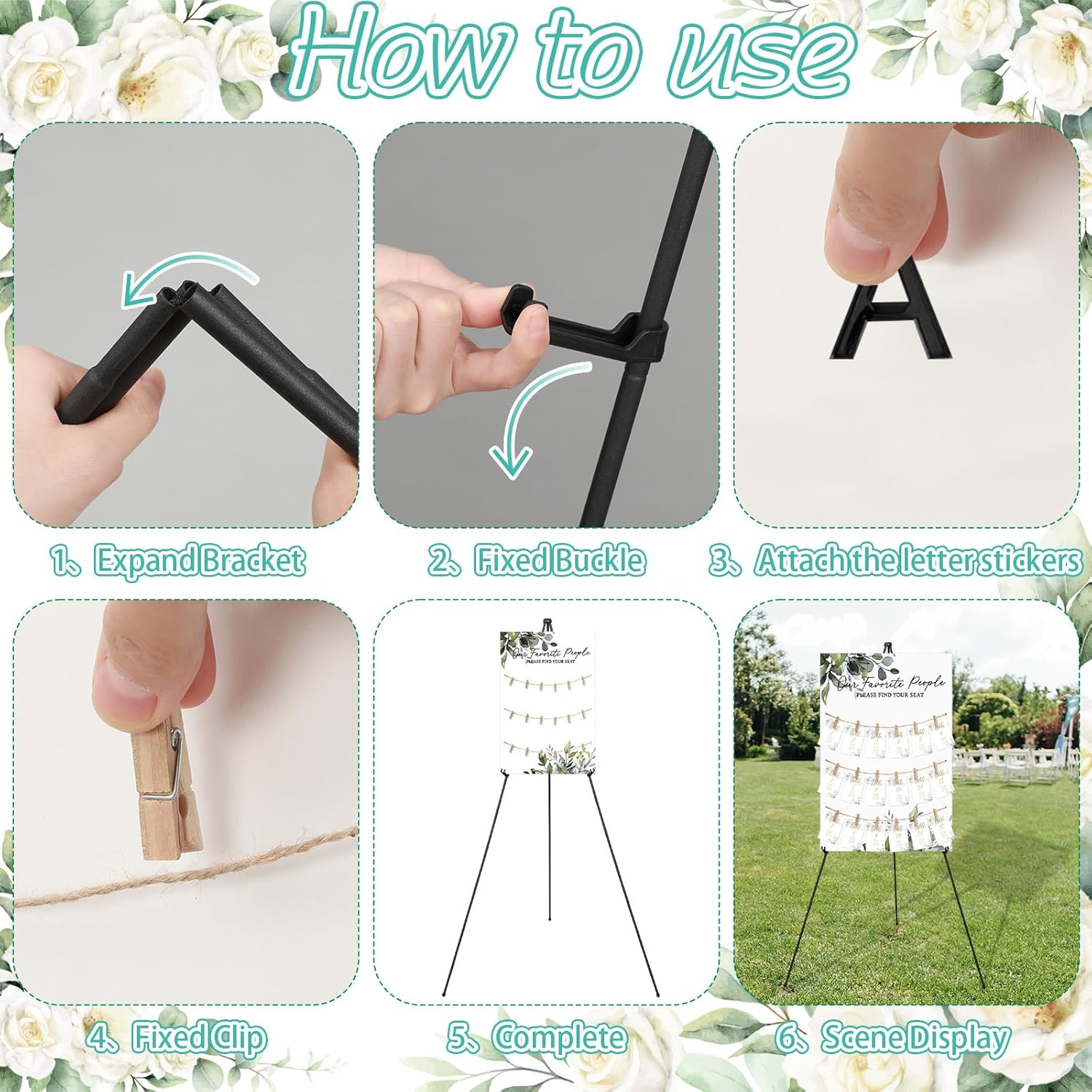 • Multi Purpose Scene Application: in addition to weddings, the rustic wedding seating chart board is suitable for birthday parties, baby showers, anniversaries, commercial exhibitions and other occasions; The easel can be applied as a poster stand, and the seating chart can be replaced with a photo wall or menu; It is a multi-purpose item with high cost performance