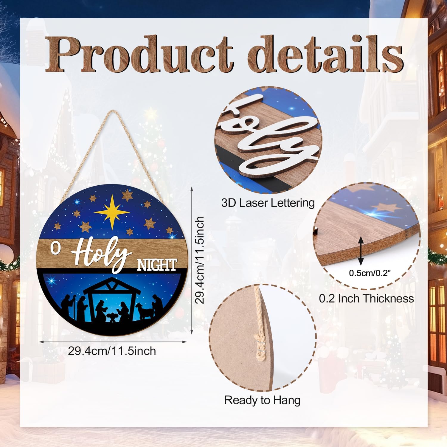 • Materials and Size: The christian christmas door hanger wreath is made of high quality MDF and poplar wood panels, safe and waterproof and measures 12" x 12", a proper size for decorating