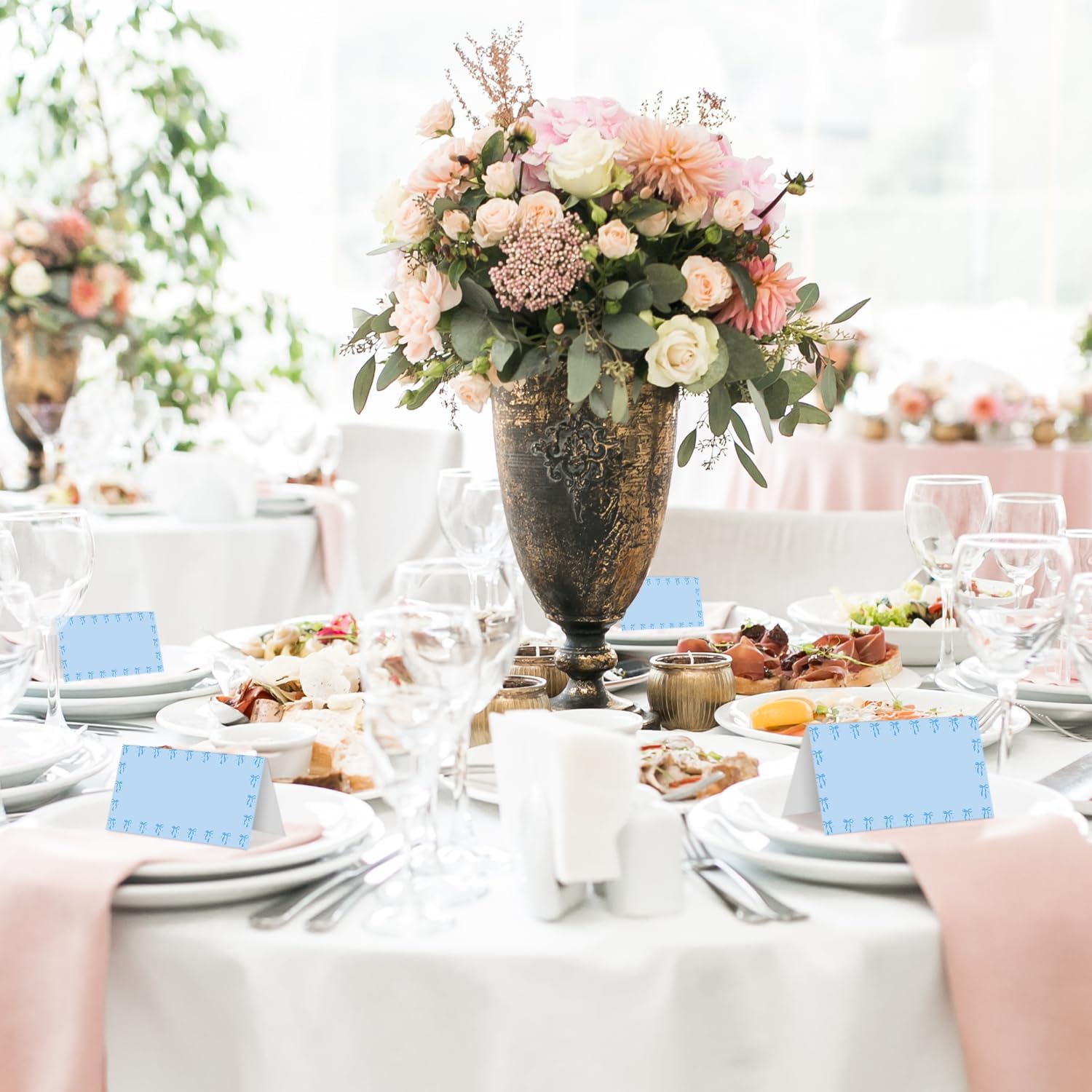 25 Bow Place Cards for Table Seating, Blue Wedding Name Place Card, Tent Cards for Birthday Bridal Shower Baby Shower Reception Dinner Party Decorations -A20