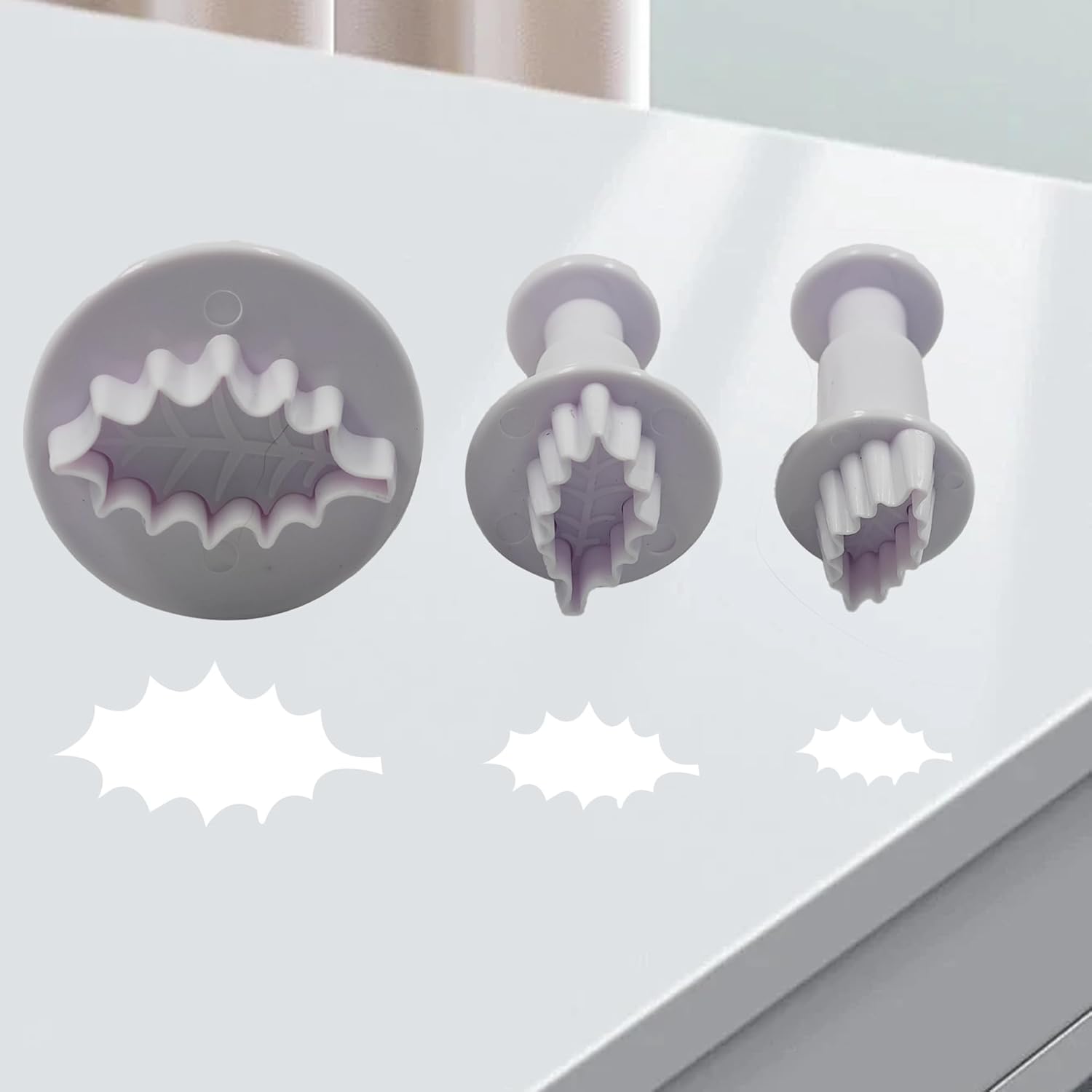 pson 3Pcs Plunger Cookie Cutter Set, Mini Plastic Biscuit Molds for Cake Decorating, Baking, Fondant, and DIY Crafts(Leaf)