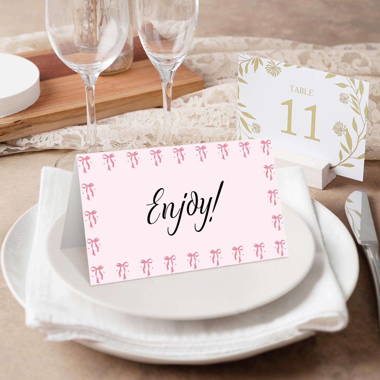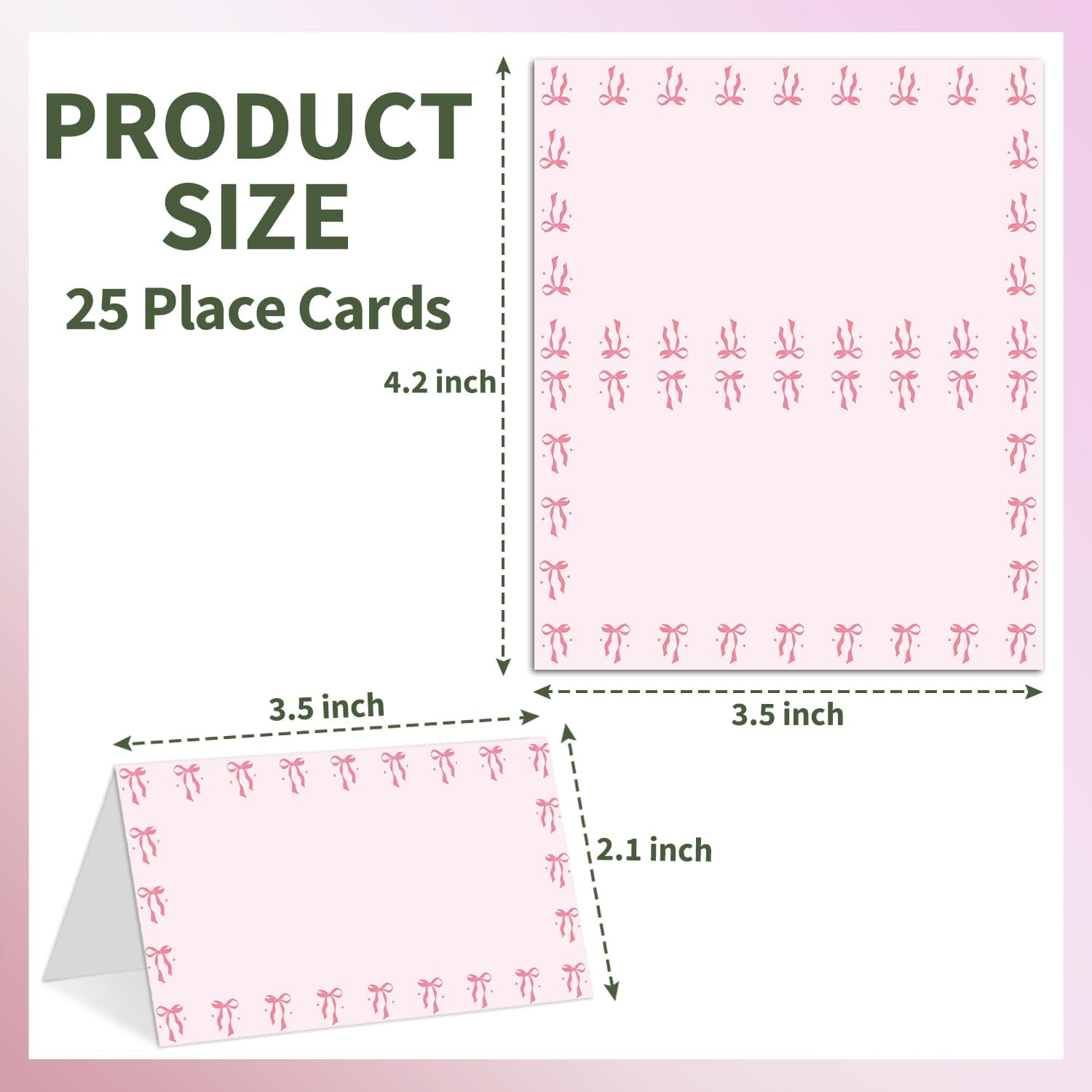 25 Bow Place Cards for Table Seating, Pink Wedding Name Place Card, Tent Cards for Birthday Bridal Shower Baby Shower Reception Dinner Party Decorations -A21