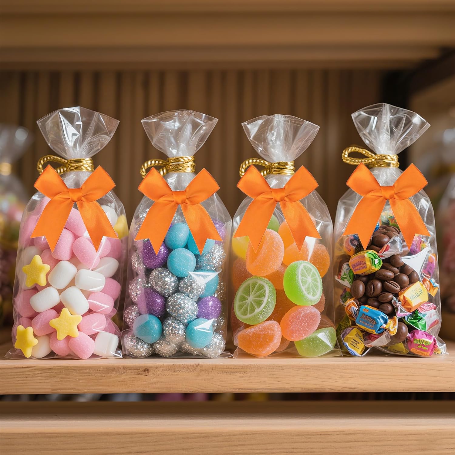 50 Pieces Gift Wrap Bows Premium Satin Ribbon Bows 3.3 Inch Craft Bows for Gift Wrapping DIY Treat Bags Holiday Gifts Bag Party Decorations, Wedding Decor Christmas Birthday Presents (Orange)