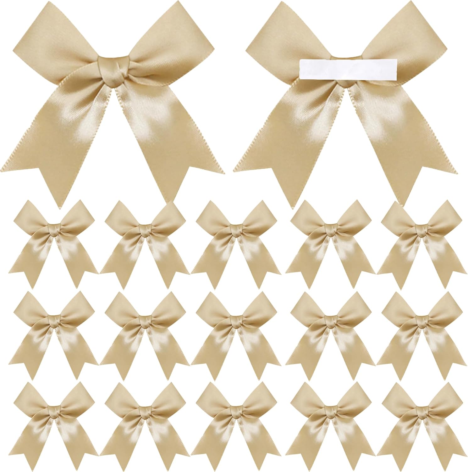 50 Pieces Gift Wrap Bows Premium Satin Ribbon Bows 3.3 Inch Craft Bows for Gift Wrapping DIY Treat Bags Holiday Gifts Bag Party Decorations, Wedding Decor Christmas Birthday Presents (Golden)