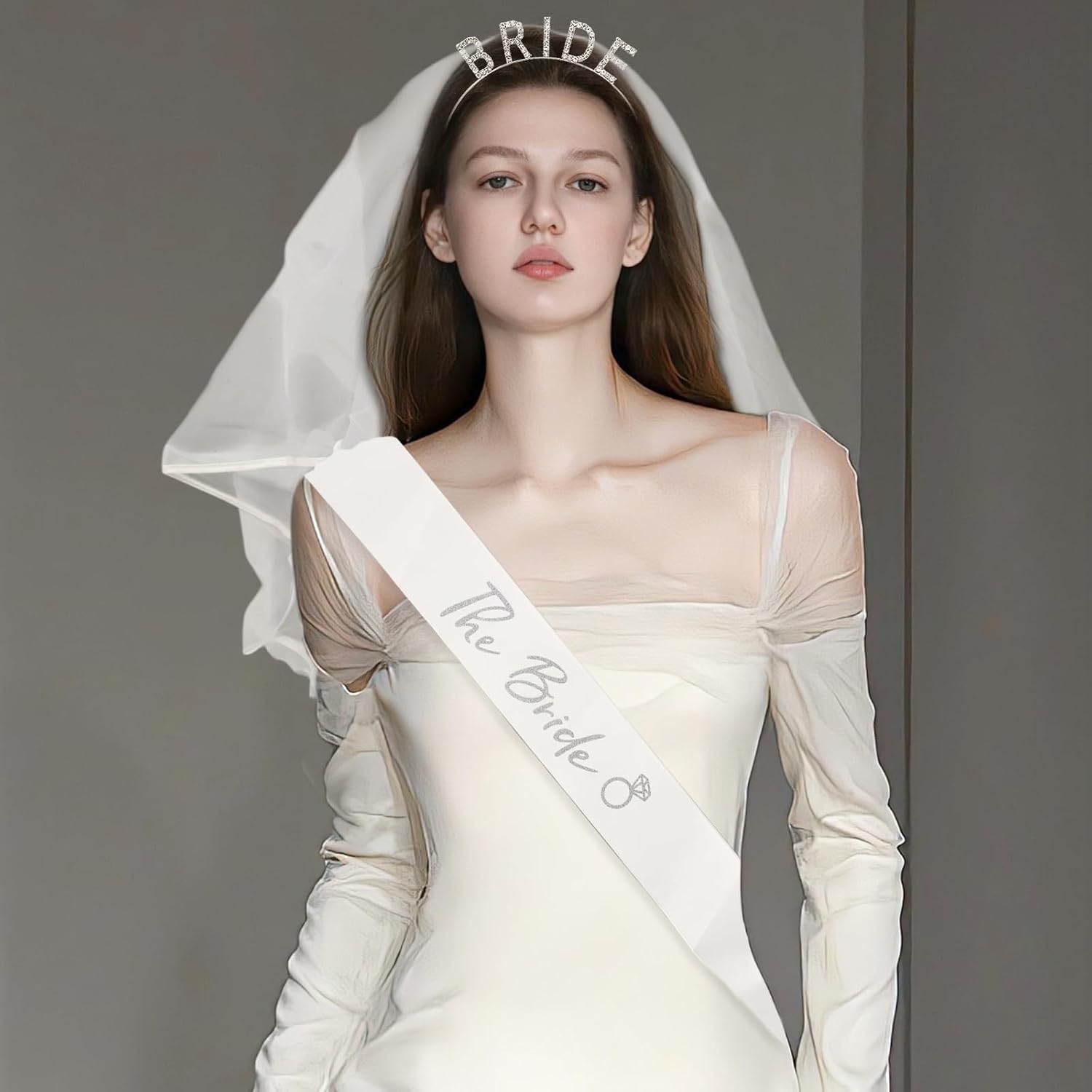 • Scene-Perfect Versatility From the bachelorette party to the altar, this 3-piece set adapts effortlessly. The bride sash shines during receptions, the veil headband elevates ceremonies, and the detachable veil transitions for photos. Ideal bride headpiece for brides seeking cohesive charm.
