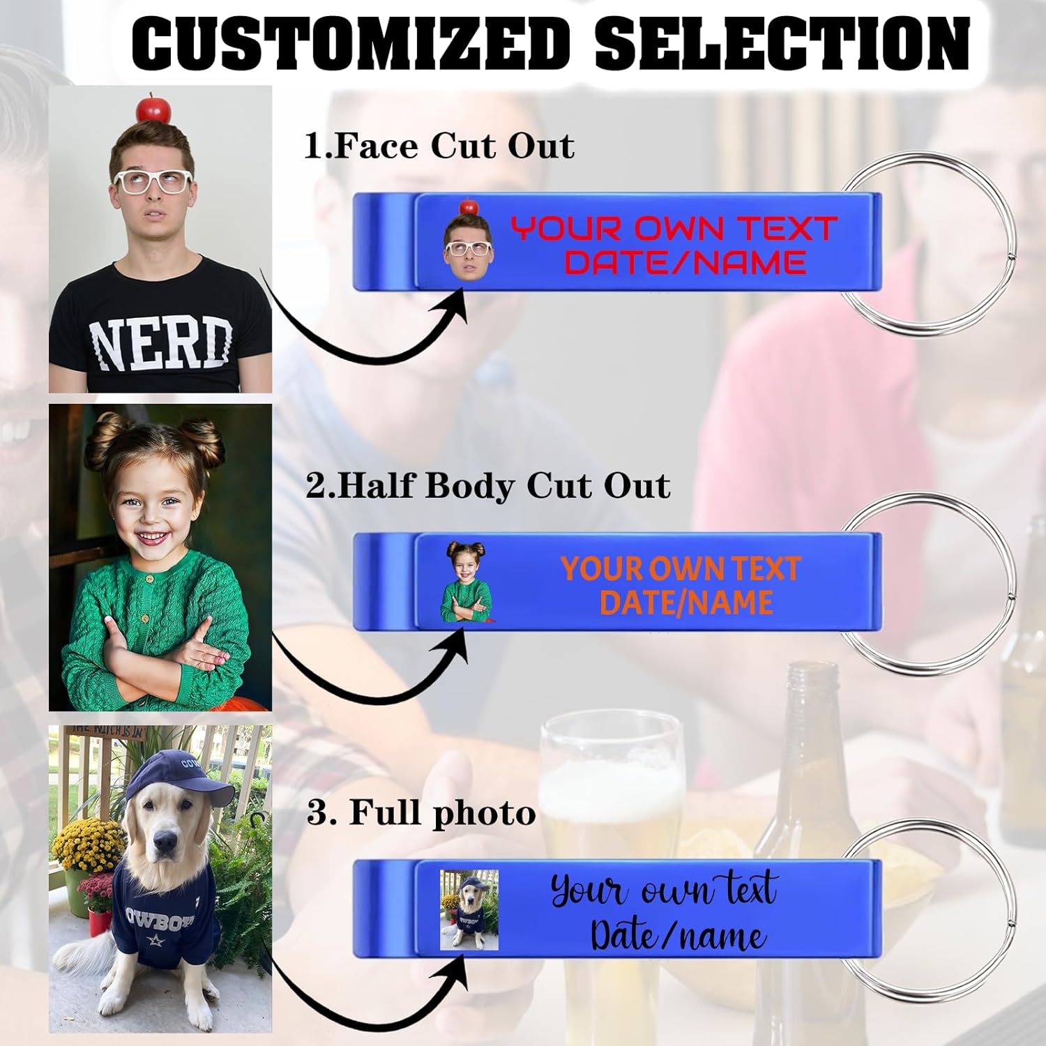 UBJVA Custom Bottle Opener Bulk Personalized Aluminum Bottle Opener Keychains with Text Logo Photo Wedding Favors Graduation Party Bar
