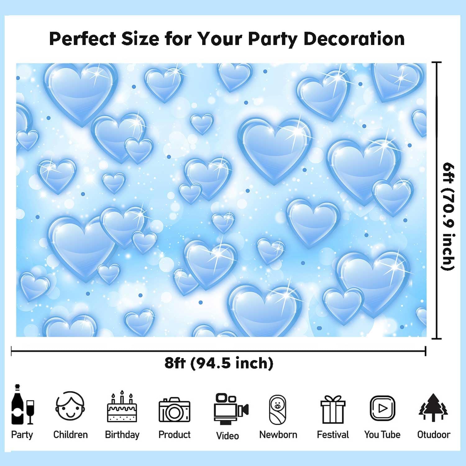 • Exquisite Design: The blue 90s backdrop designed with abstract bokeh background and sky blue hearts, it can be a highlight of decorations for your throwback party, adding more delightful and fantasy atmosphere to your event.