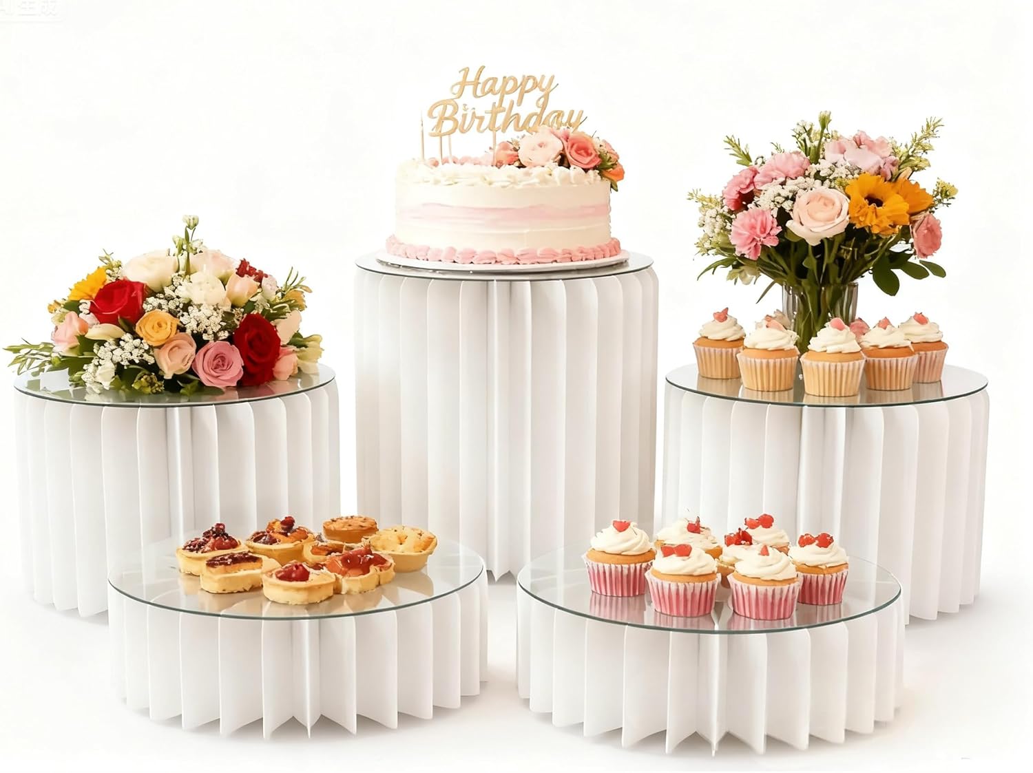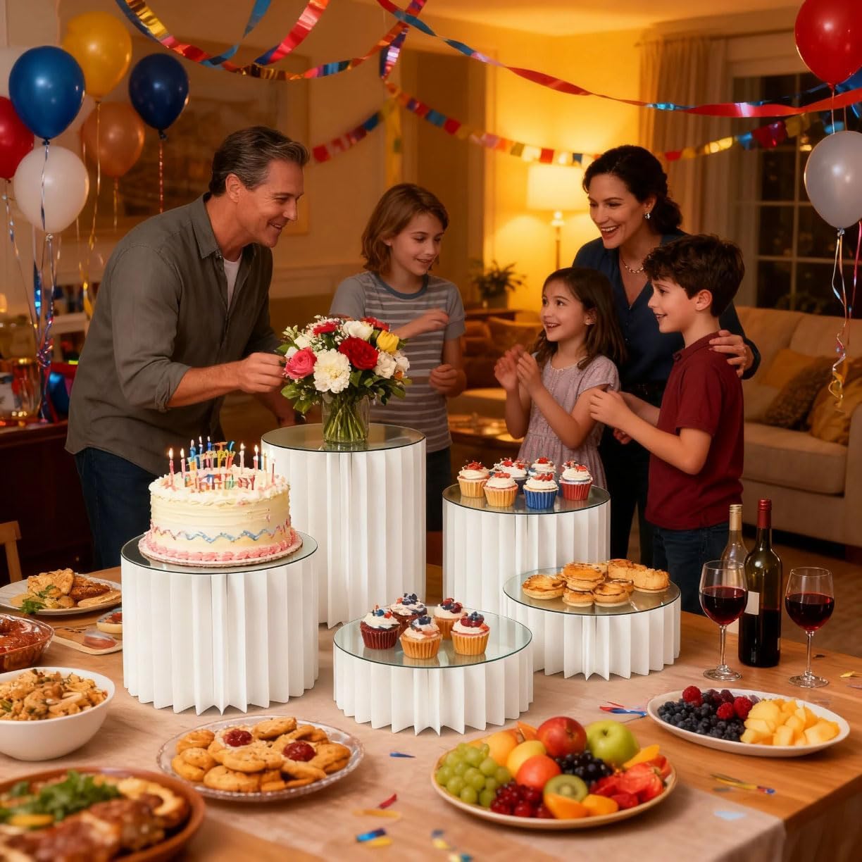 • Ideal Multi-Tier Dimensions: Set includes three stands of different heights—larger: 11.8" diameter × 11.8" height; medium: 11.8" diameter × 7.8" height; smaller: 11.8" diameter × 4" height. Perfect for creating dynamic layered displays at home events or large gatherings