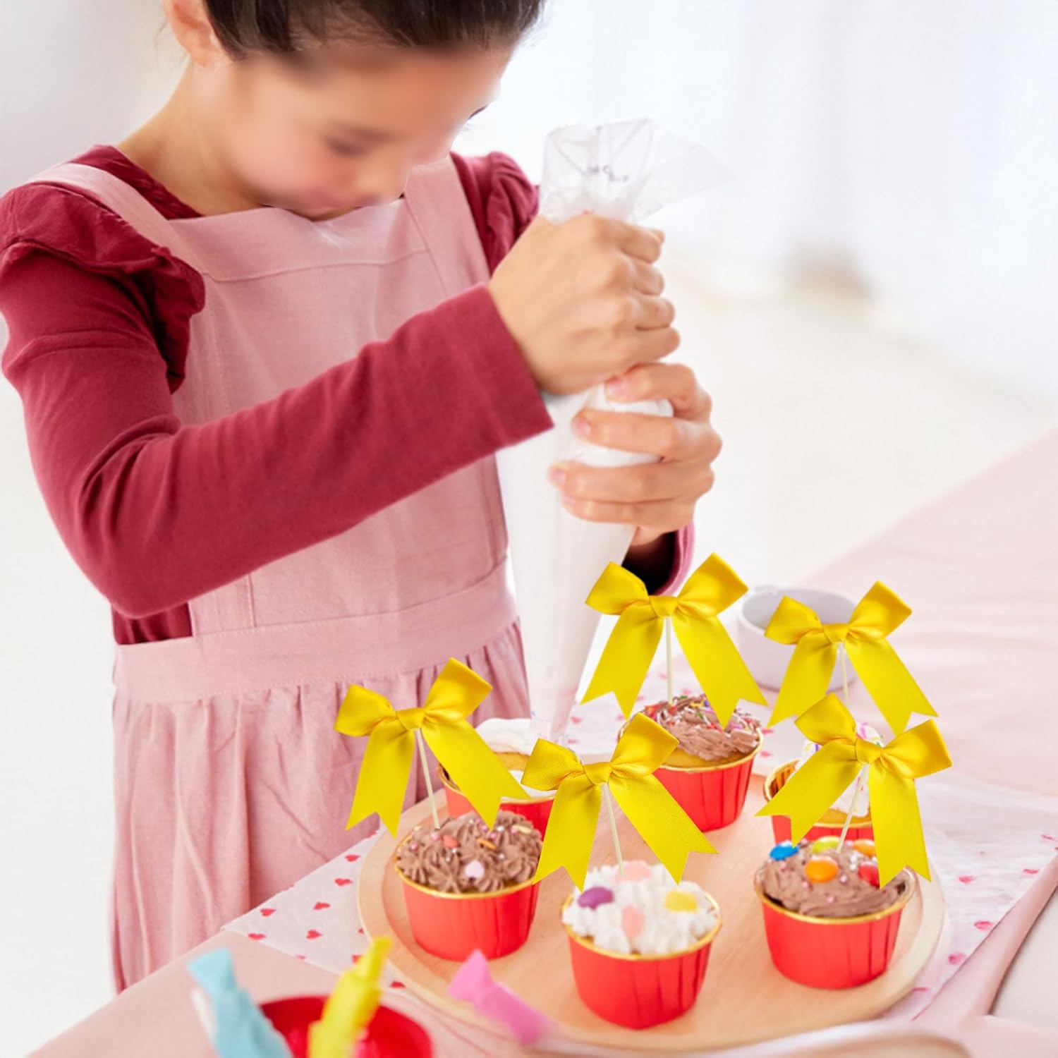Gyufise 24Pcs Bow Cupcake Toppers Coquette Bow Girls Birthday Cake Decorations Bowknot Cake Toppers Bowknot Cupcake Picks for Baby Shower Birthday Wedding Bridal Engagement Party Supplies Yellow