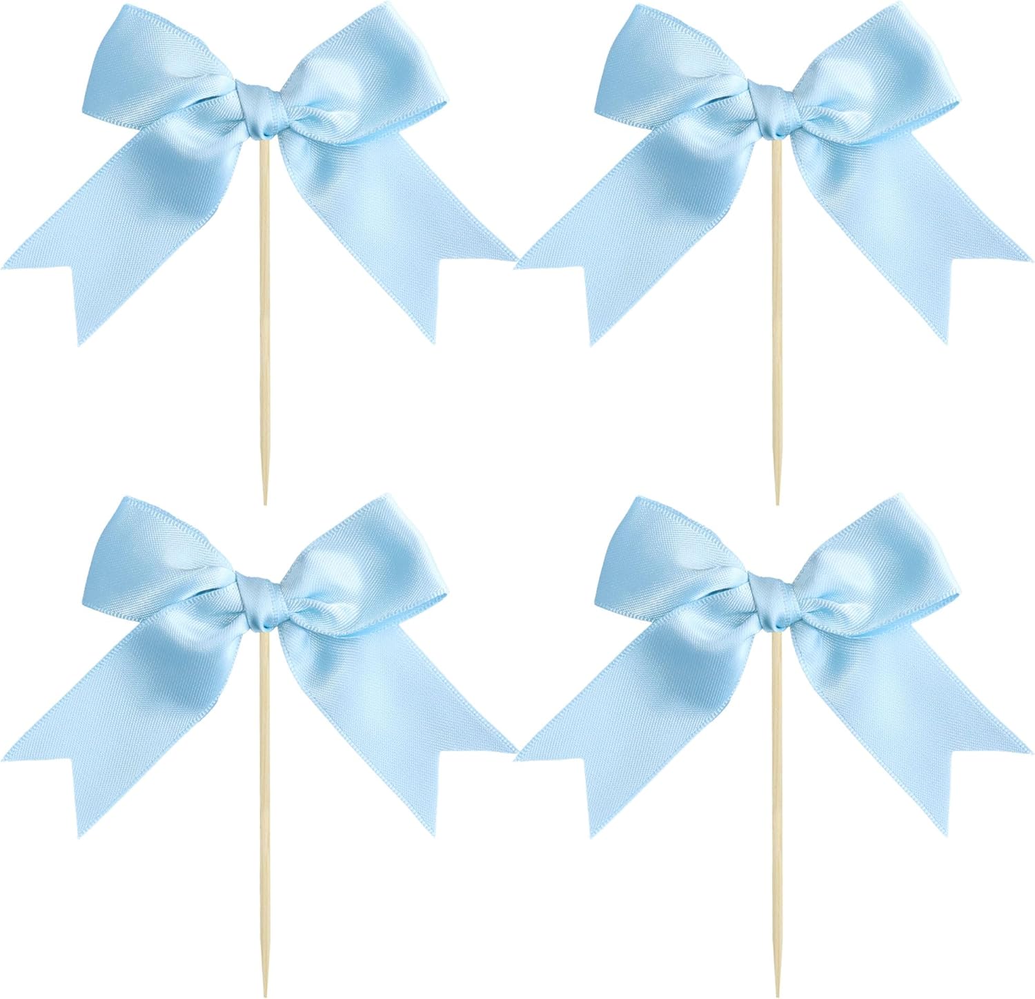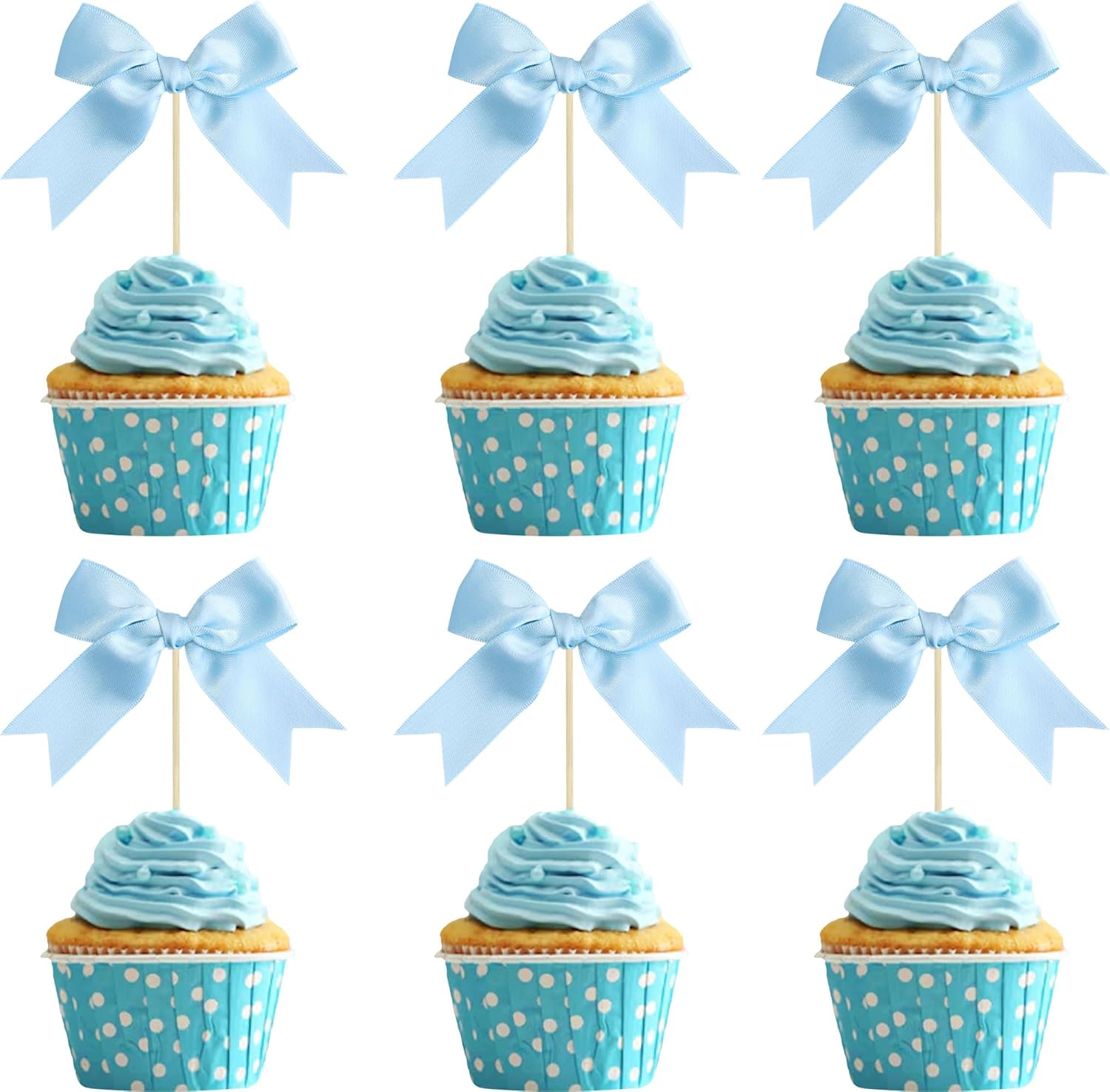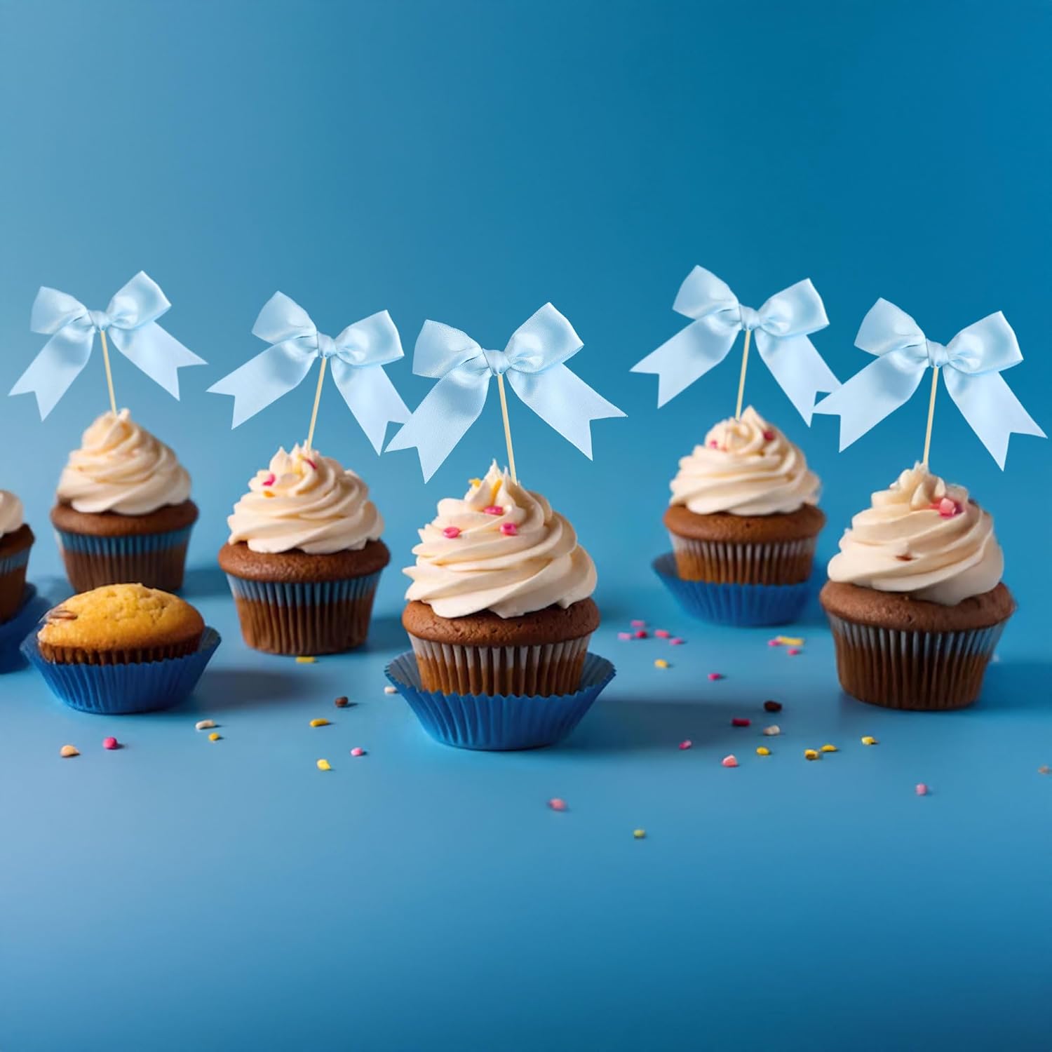 Gyufise 24Pcs Bow Cupcake Toppers Coquette Bow Girls Birthday Cake Decorations Bowknot Cake Toppers Bowknot Cupcake Picks for Baby Shower Birthday Wedding Bridal Engagement Party Supplies Lake Blue