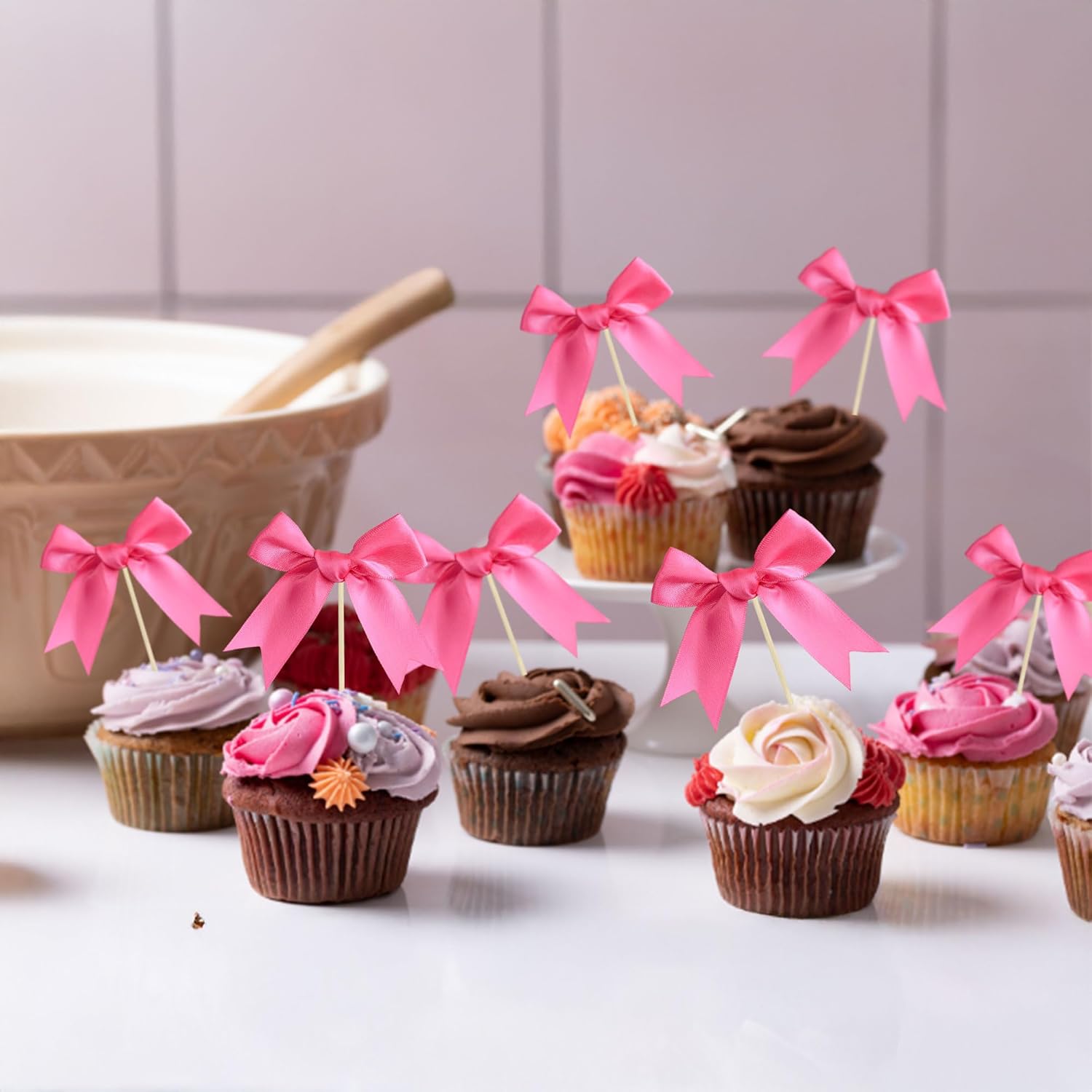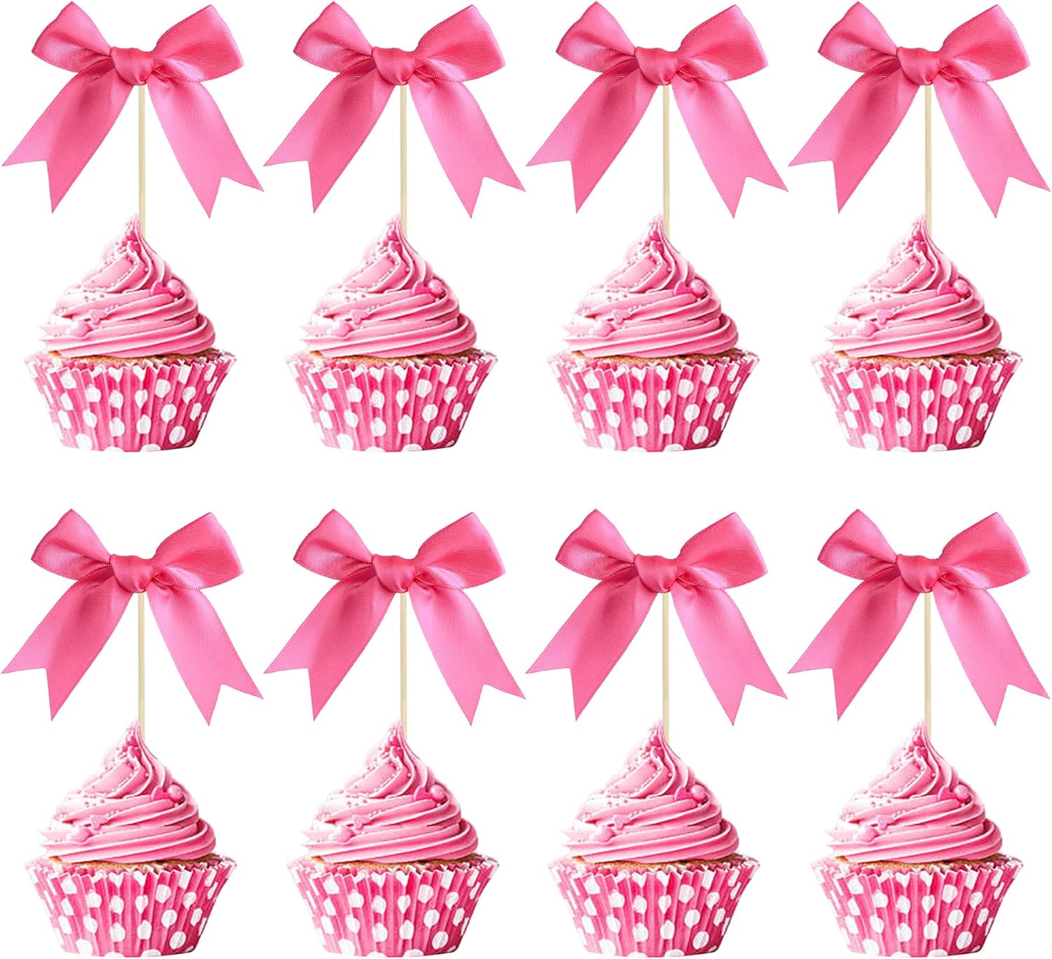 • --Premium Material: These Bow Cupcake Toppers are made of high quality polyester satin ribbon, very safe to put them on cakes, cupcakes, ice cream, fruits, pie, dessert, cheese or any dish and food appetizer you want to decorate bow theme party decorations.